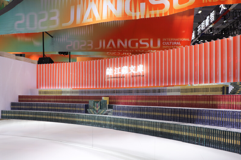 整面书墙。1002册《江苏文库》出版物垒起四层书架,绵延近10米,书籍封面有黛绿、藏青、朱红等古典色彩,绢缎装帧熠熠生辉,是不可错过的文艺打卡点。