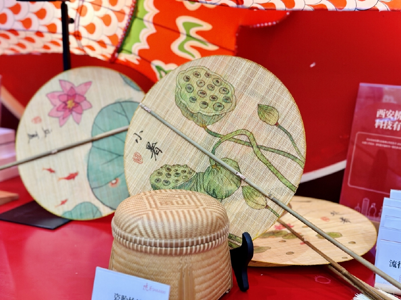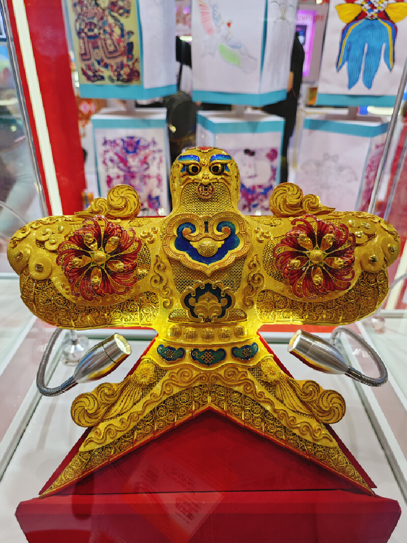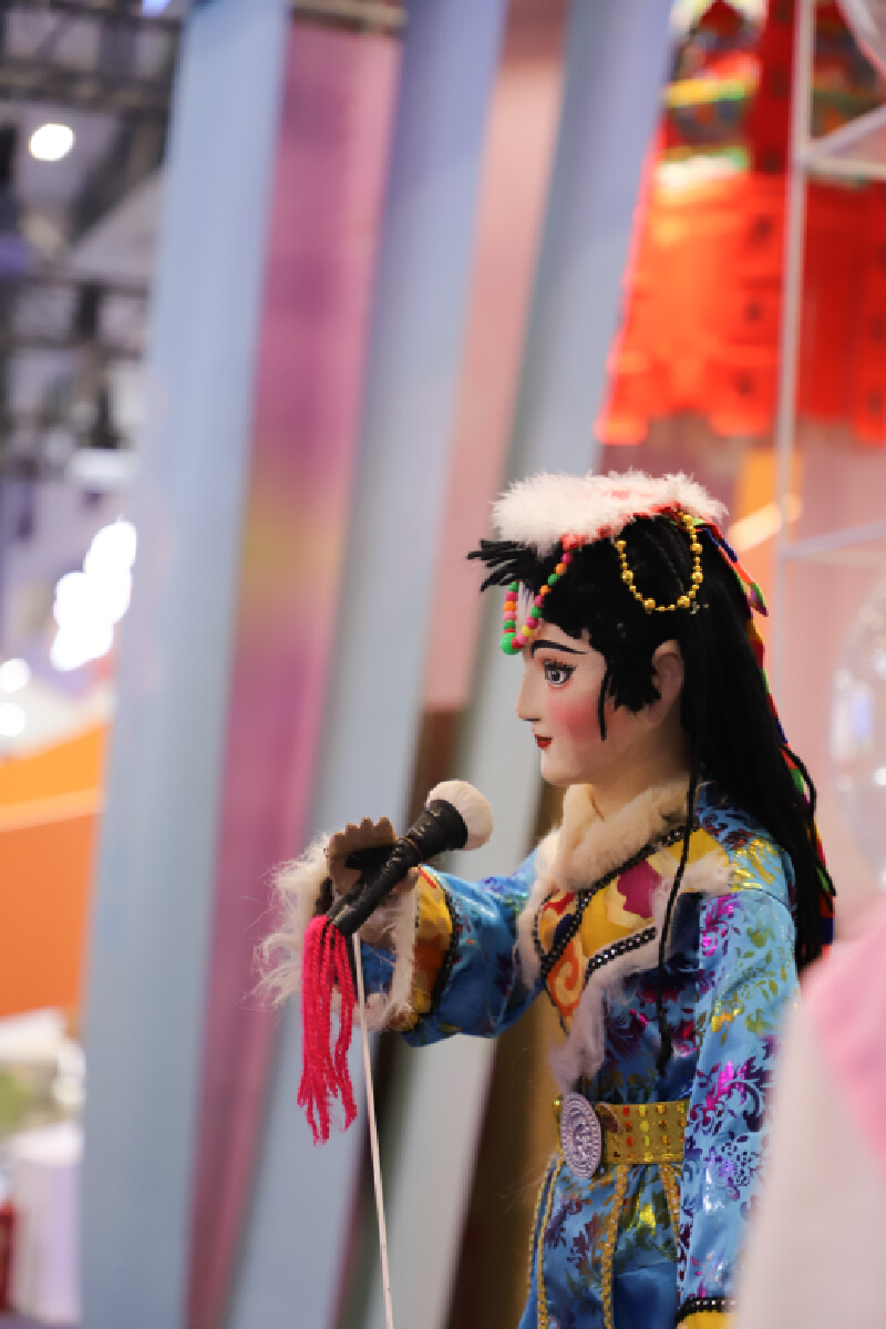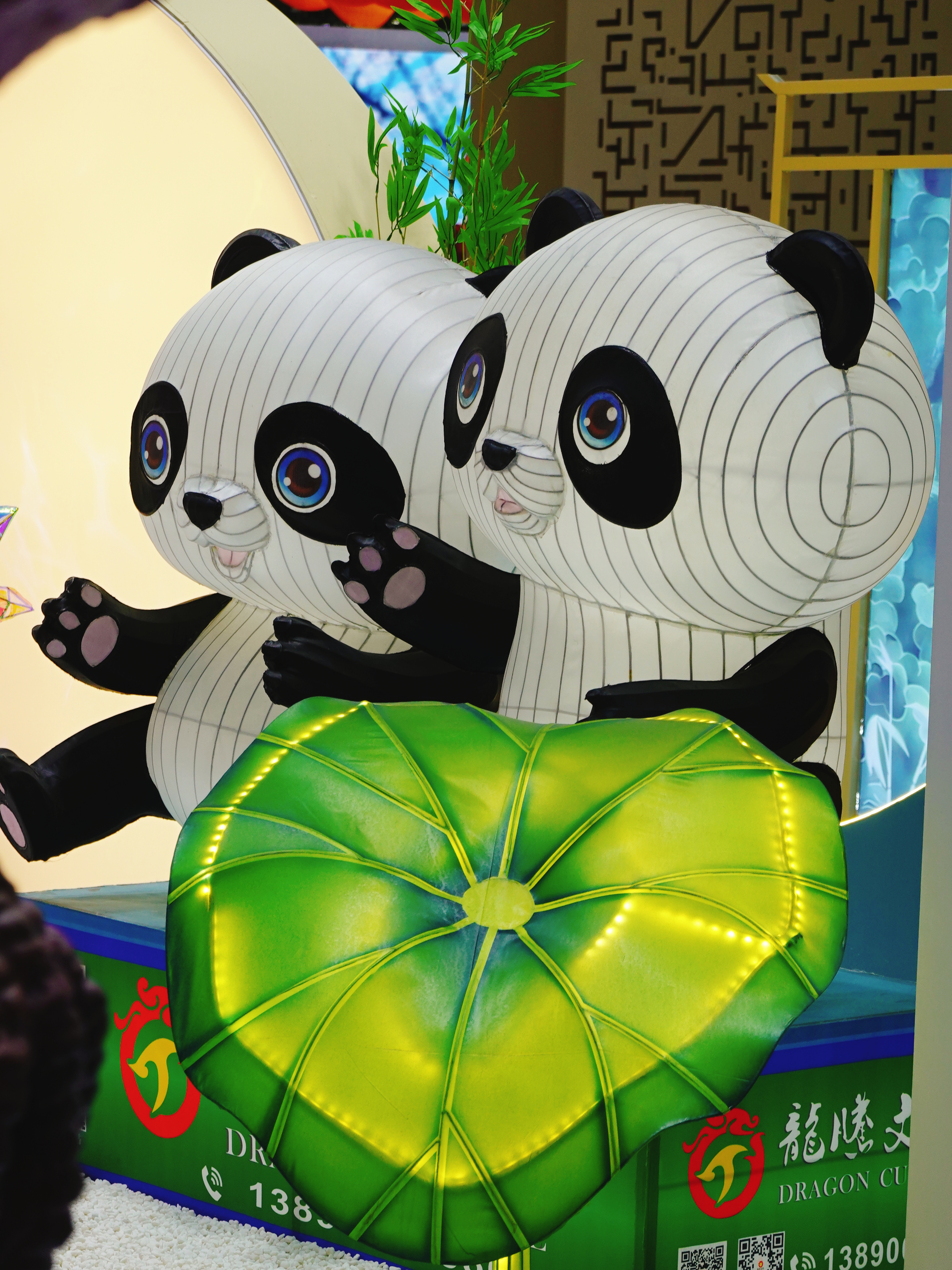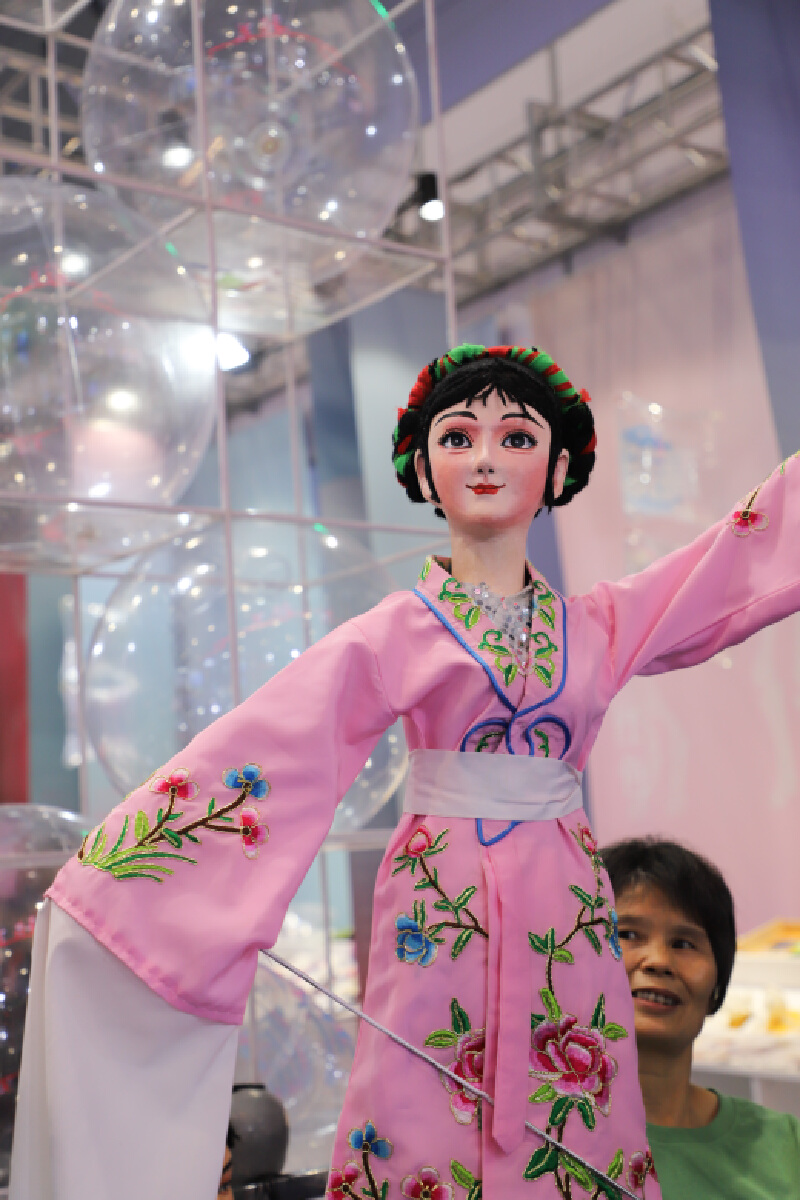 这里仿佛是一条文化连廊,既能看到长沙歌舞剧院带来长袖翩翩的陶俑舞,又能观赏佛山舞龙舞狮头饰,更有景德镇的精美瓷器,“鸢都”潍坊的巨型龙头风筝,成都的软萌熊猫……