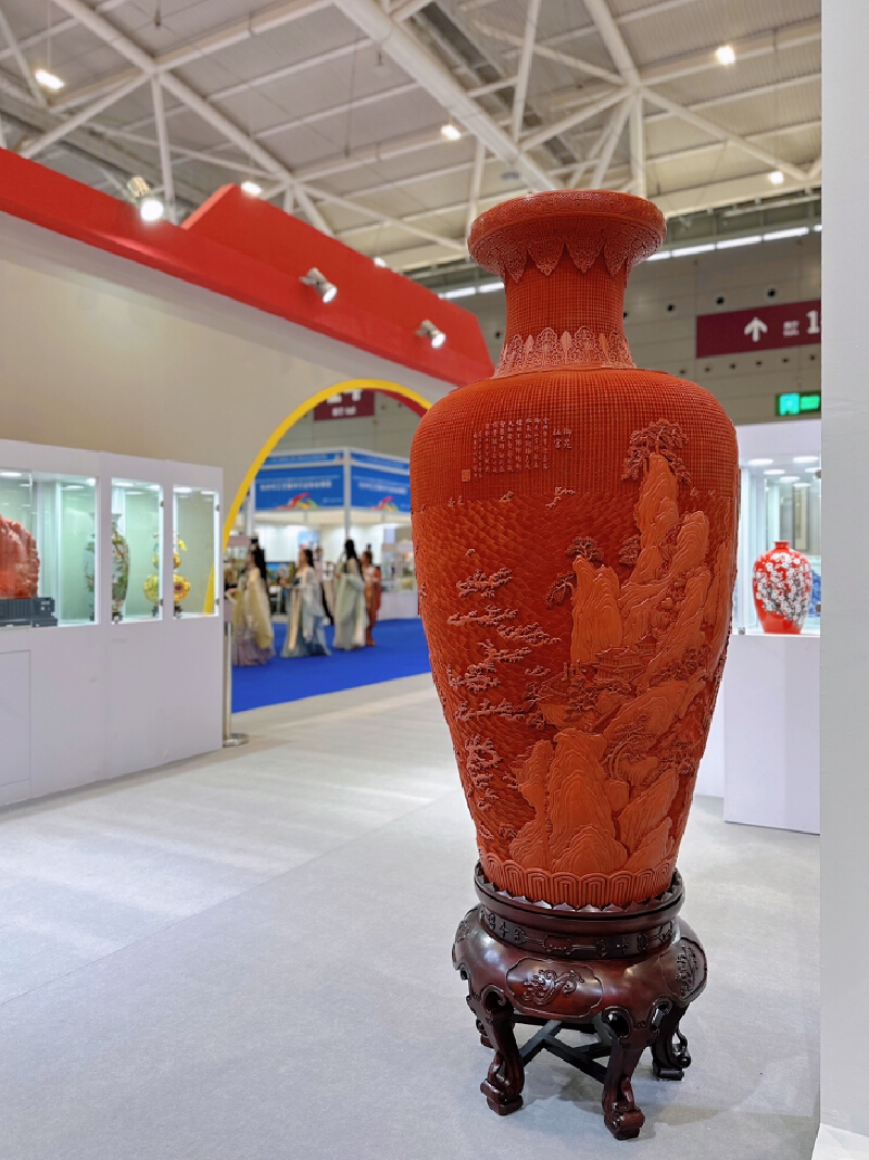 锣鼓节奏韵律感极强的英歌舞火到文博会,一场看下来酣畅淋漓!一起来的,还有非遗项目“蛋雕”。