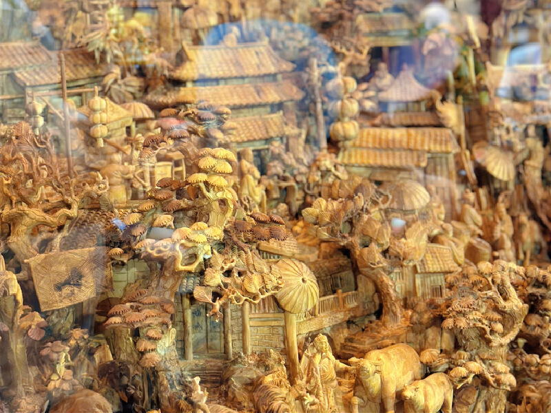 工艺精湛的璀璨珠宝、精雕细刻的木质屏风、栩栩如生的苏绣……在这个馆里,很难不被琳琅满目的艺术展品迷住眼。