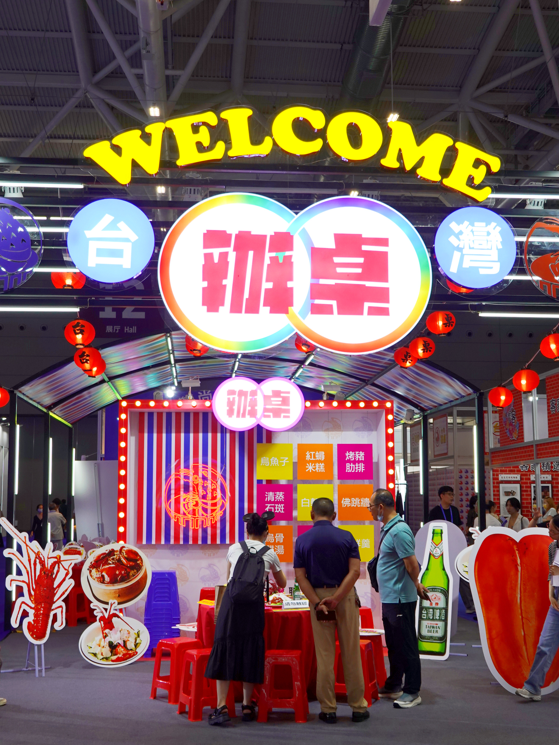 沉浸式“办桌”。“办桌”是随着大陆闽粤地区的移民传入台湾的习俗,如今这个场景被完美复刻到了文博会场。有点“俗”的露天K歌舞台,摆满“美味佳肴”的圆桌……落座其中,一秒回到热闹又温情的记忆里。