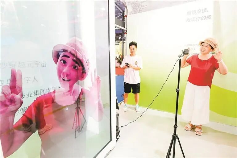 ▲9号馆深圳报业集团展馆的魔镜吸引了许多观众参观体验
