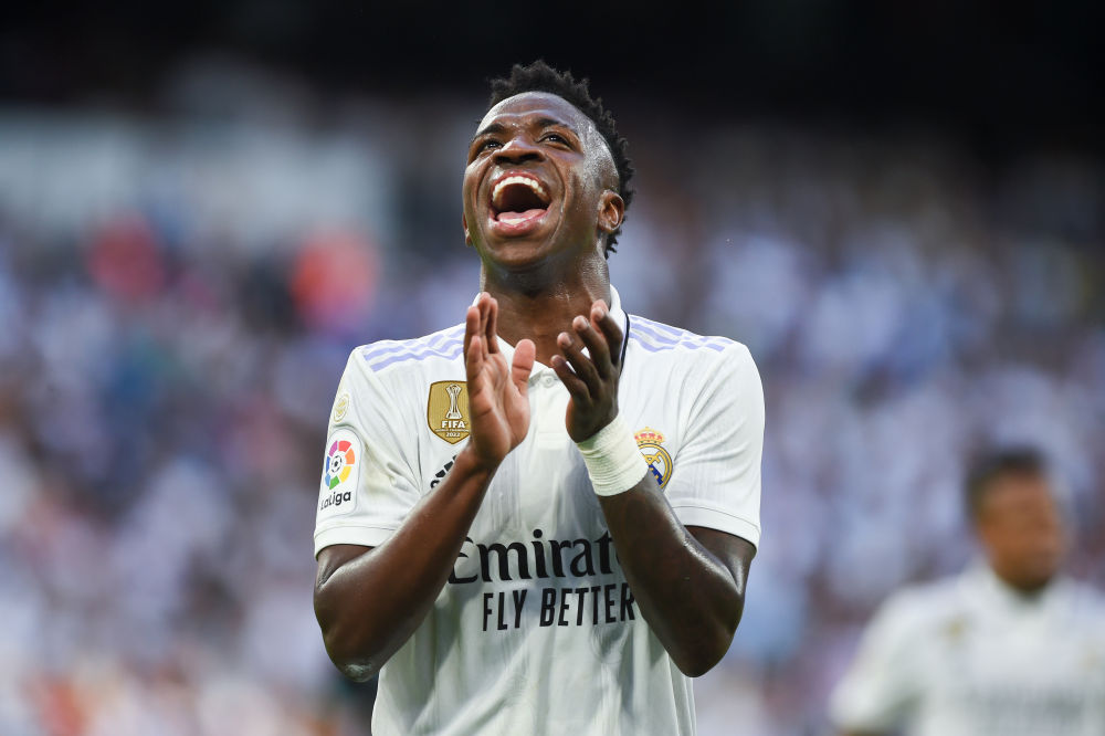 4月29日,皇马球员维尼修斯在西甲比赛中庆祝进球。新华社发(古斯塔沃·巴连特摄)