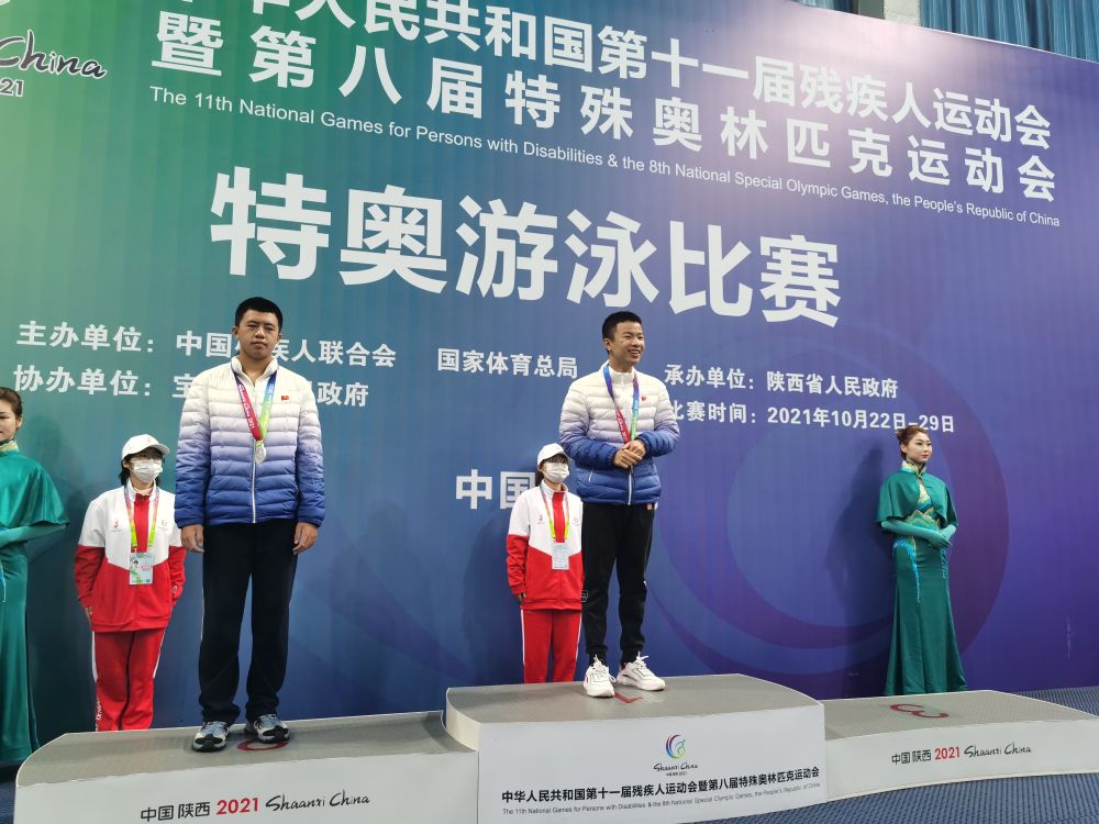 功夫不负有心人,儿子在全国第十一届残运会暨第八届特奥会男子12-15岁组200米自由泳比赛中获得金牌。