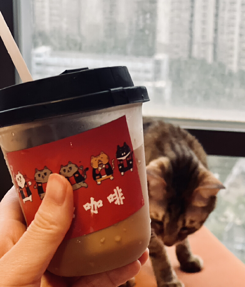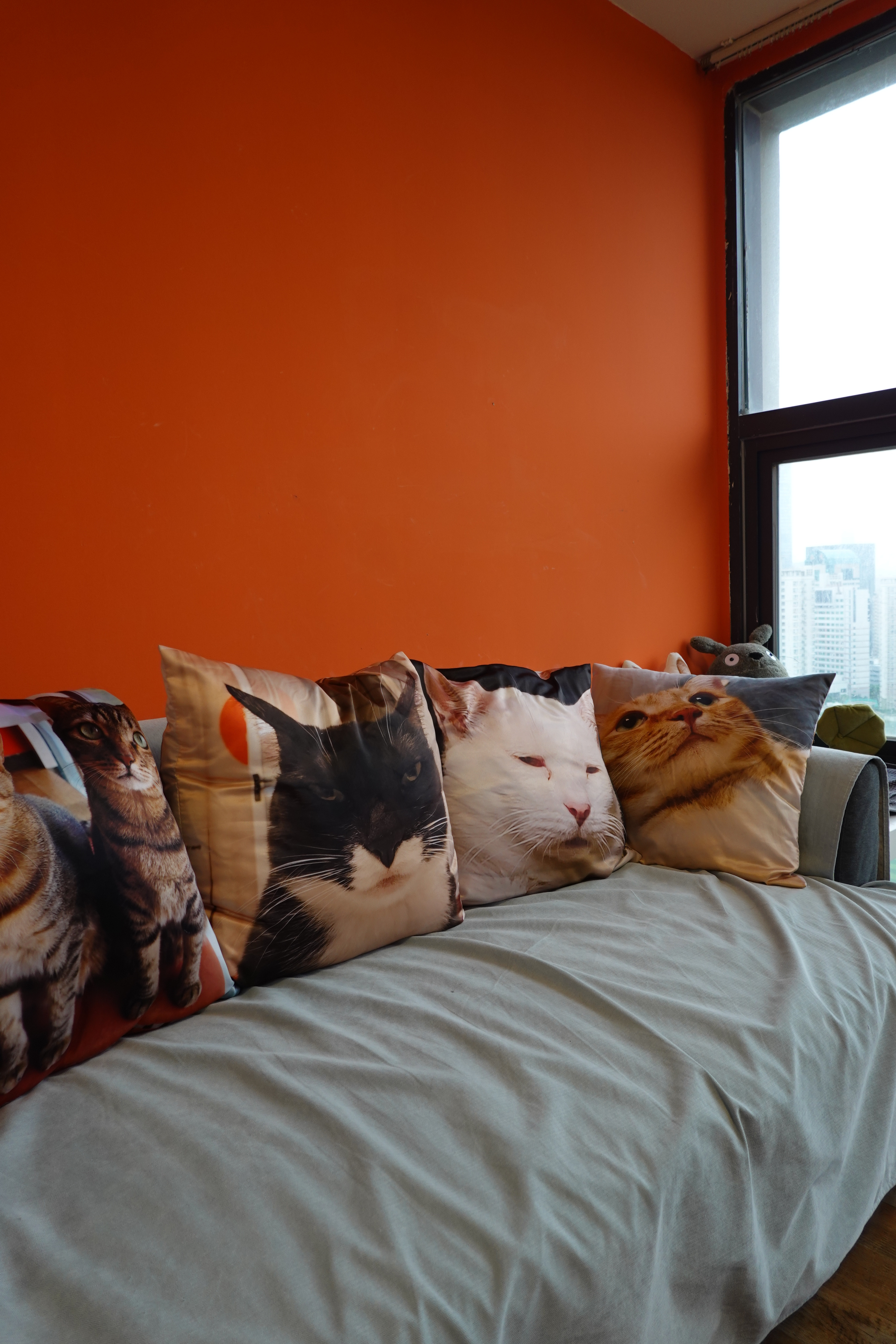 店里养的5只猫都被老板印在了咖啡上,连店里的靠枕也是按照店里猫猫的样子定制的枕套。强调,这真的不是一家猫咖,老板设置了一道小门阻止猫猫到咖啡厅来,但架不住有几只猫自己"社牛",跳出小门,主动找客人玩。