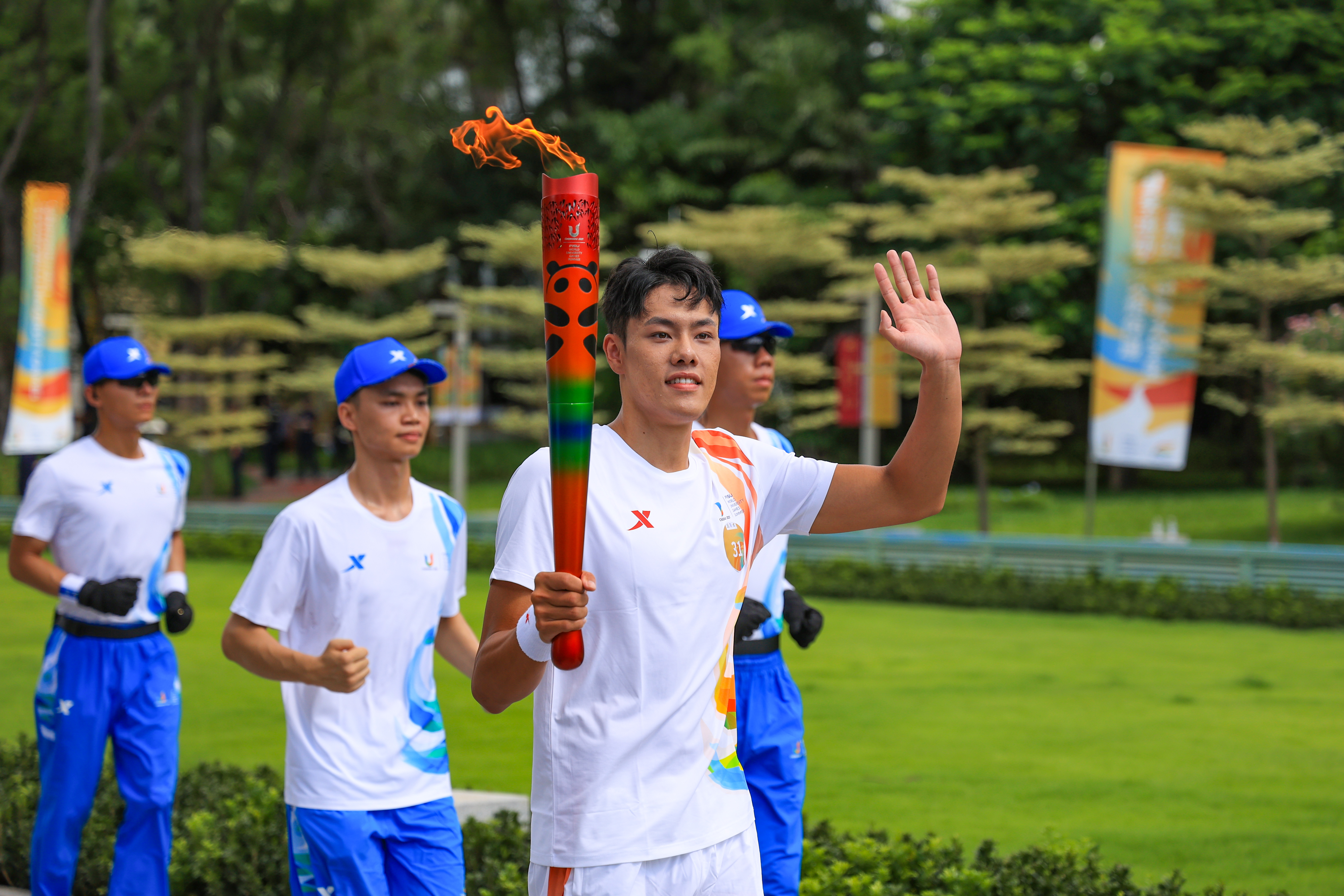 6月20日上午,成都第31届世界大学生夏季运动会深圳站火炬传递在深圳大学举行。“亚洲飞人”苏炳添、奥运会体操冠军陈一冰、奥运会自行车冠军钟天使等31名火炬手,在深大校园传递体育精神,进一步激发深圳青年的运动热情。