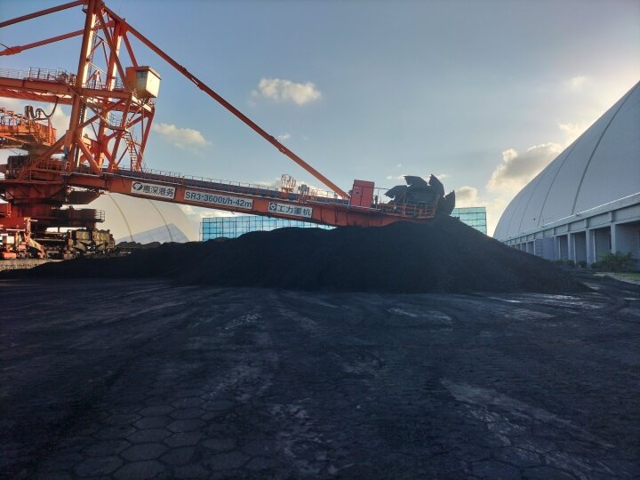 在大亚湾开发区纯洲岛的煤炭码头上,停靠着来自全国各地的煤轮,大型卸船机从船上装起煤炭,再通过皮带机运送到不远处的封闭式煤仓。很快,这些煤炭将从大亚湾出发,通过惠大铁路、京九铁路输送到赣南、河源、梅州等地的电厂。