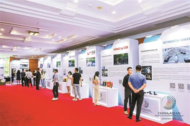 中国—东盟新兴产业论坛上,20多家有东盟市场拓展计划的深圳企业举办“专题展”。论坛组委会供图