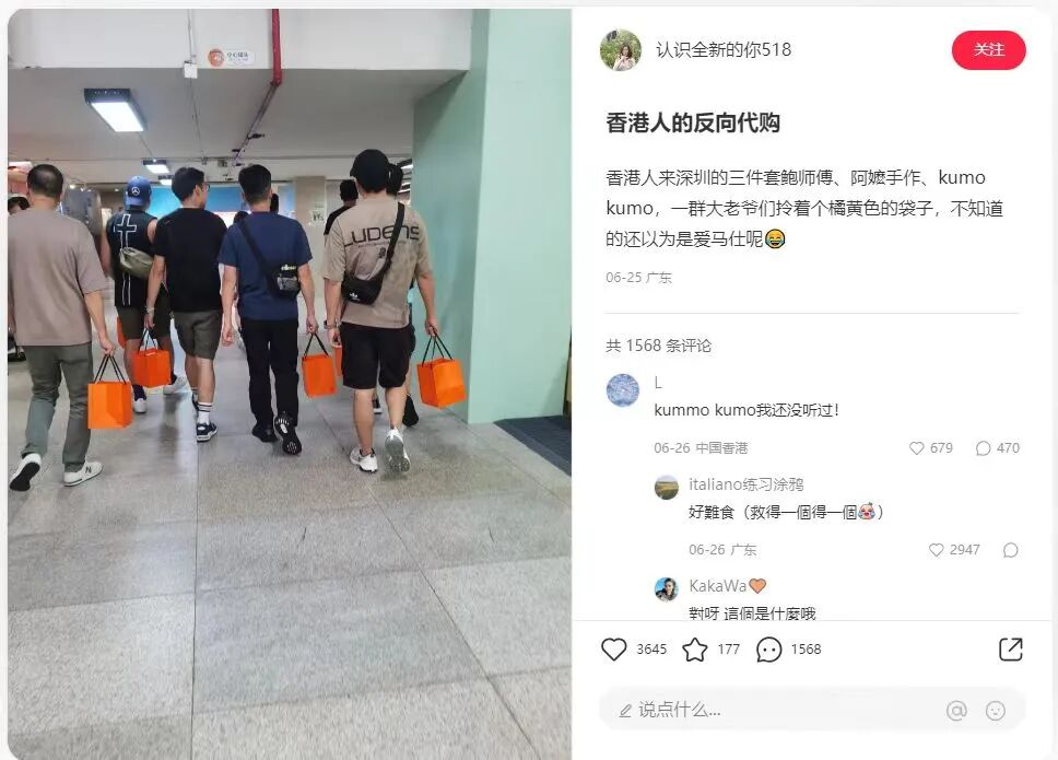 与以前不同的,是今年香港居民来深的消费热度。香港大湾区时报报道:疫情前,很多内地人来港消费,代购药妆、奶粉和高端免税商品,通关后出现了“反向消费”和“反向代购”,就是港人到深圳吃喝玩乐,甚至代购网红卤味、奶茶、糕点。