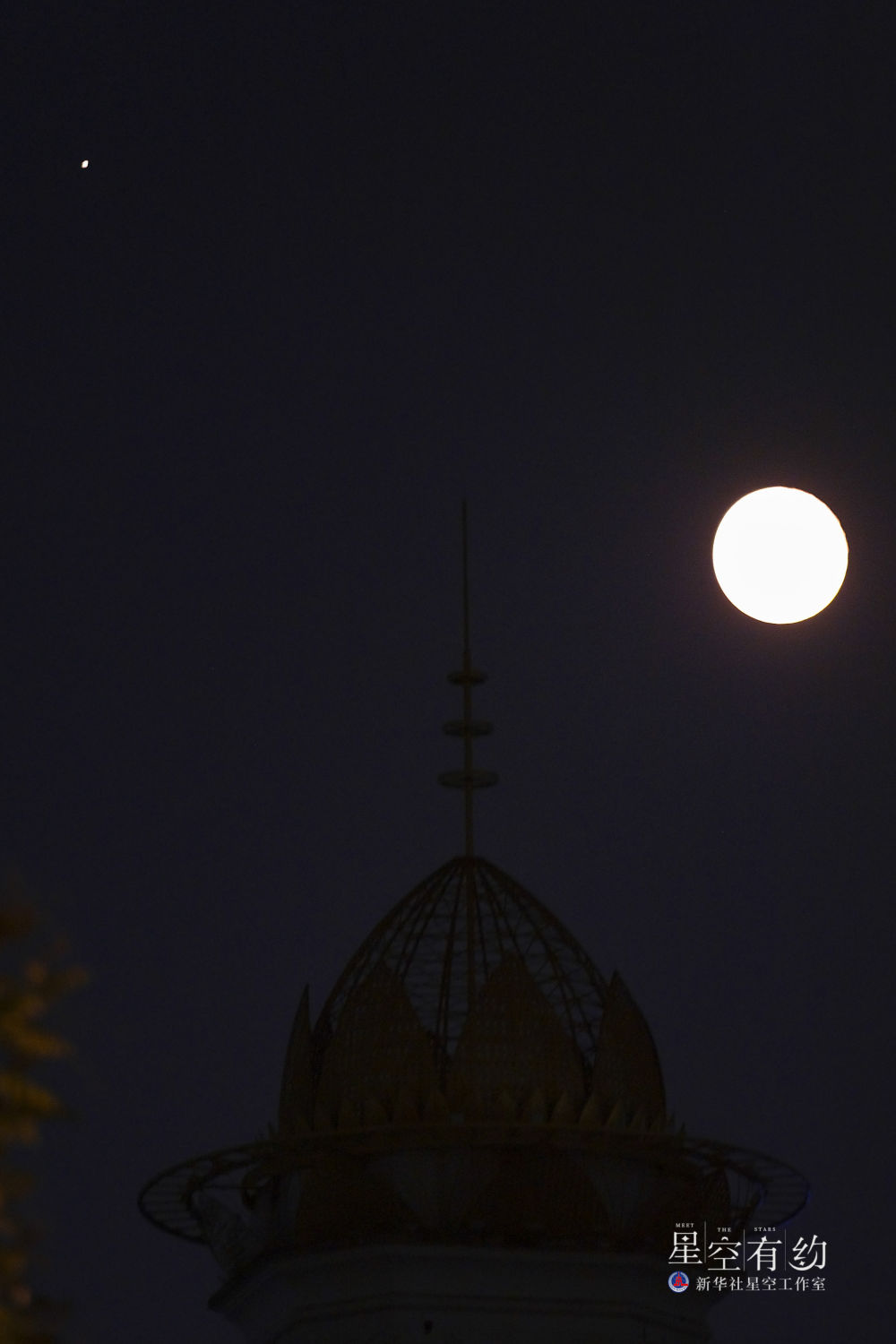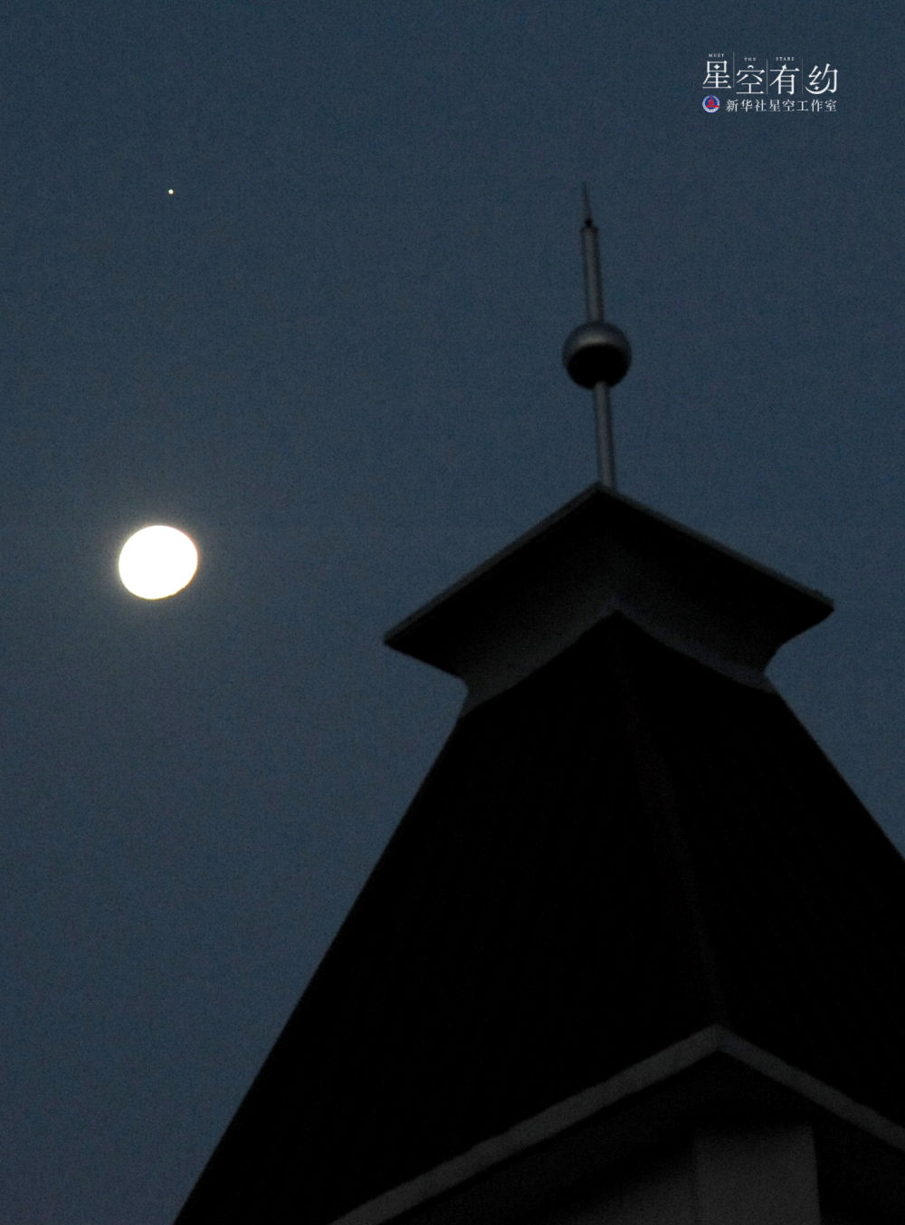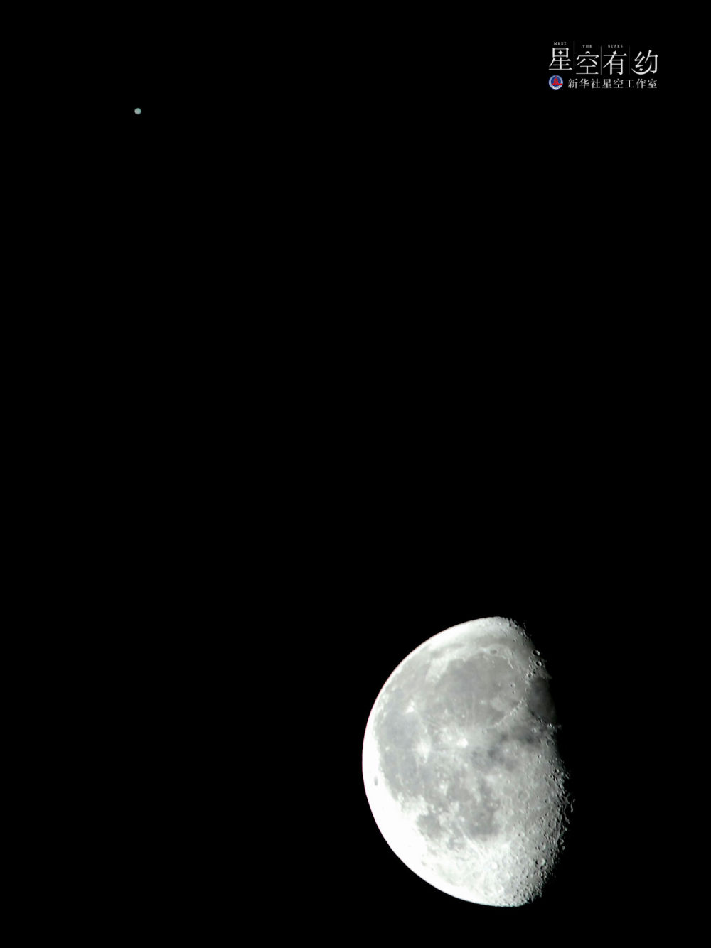 这是2022年9月11日晚在北京丰台拍摄的木星与月亮。当晚,天宇上演木星合月的美丽天象。新华社记者张铖 摄