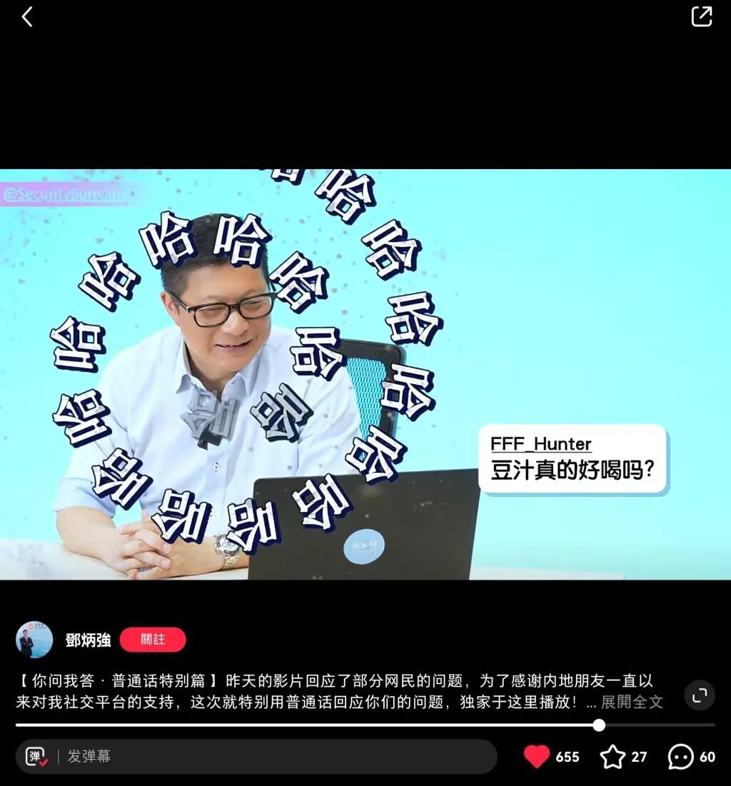 特区政府保安局局长邓炳强在“小红书”上分享回答网友提问的视频。邓炳强社交媒体账号截图
