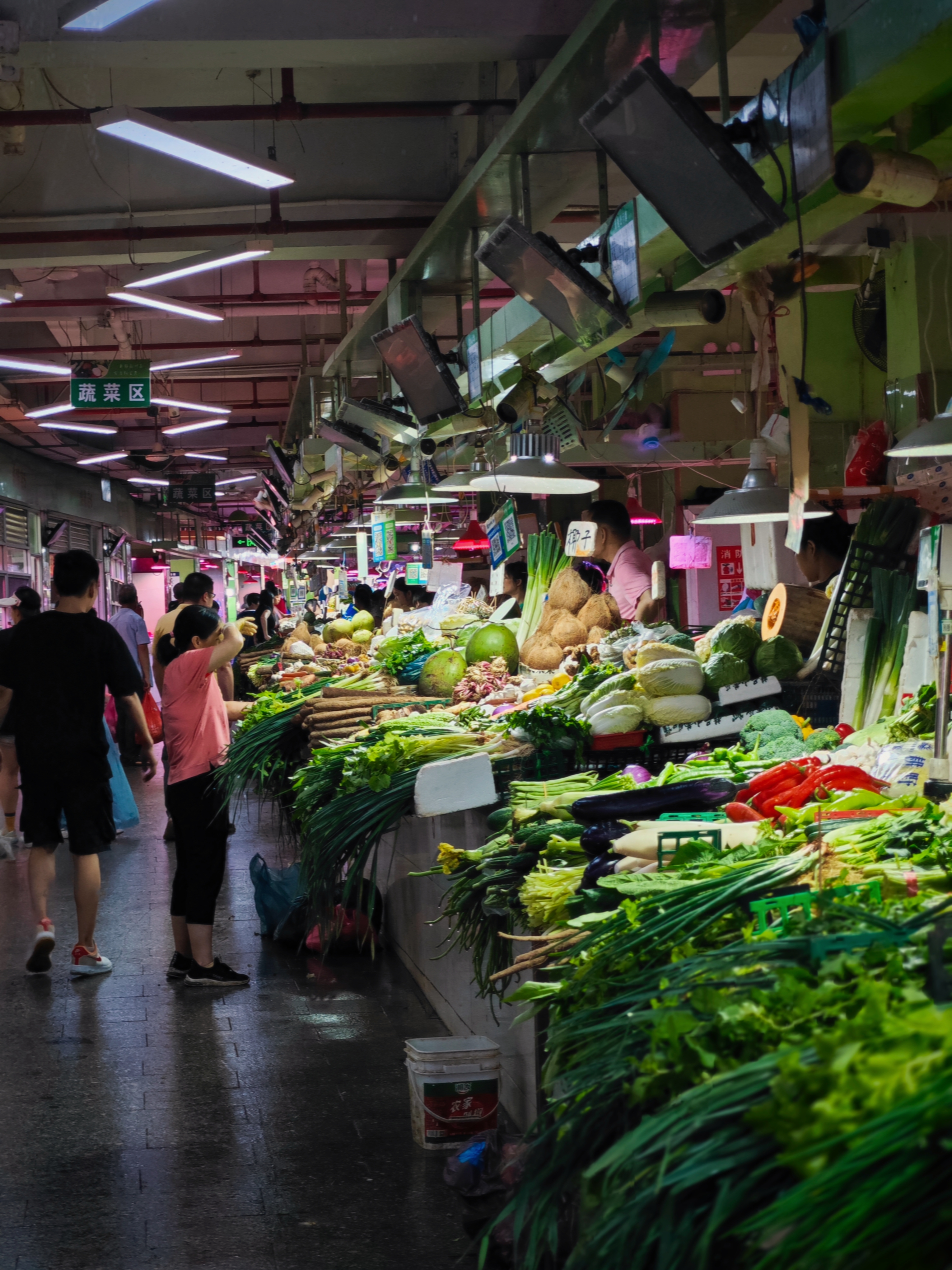 布吉的清晨,从菜市场开始。富民农批菜市场是布吉里一个较大的农贸市场,因为富民农批菜市场的位置邻近铁路,所以也被称为“铁路市场”。市场不远处时不时有火车驶过,轰隆隆的声音与此起彼伏的叫卖声交织在一起,整个市场熙熙攘攘,人头攒动。