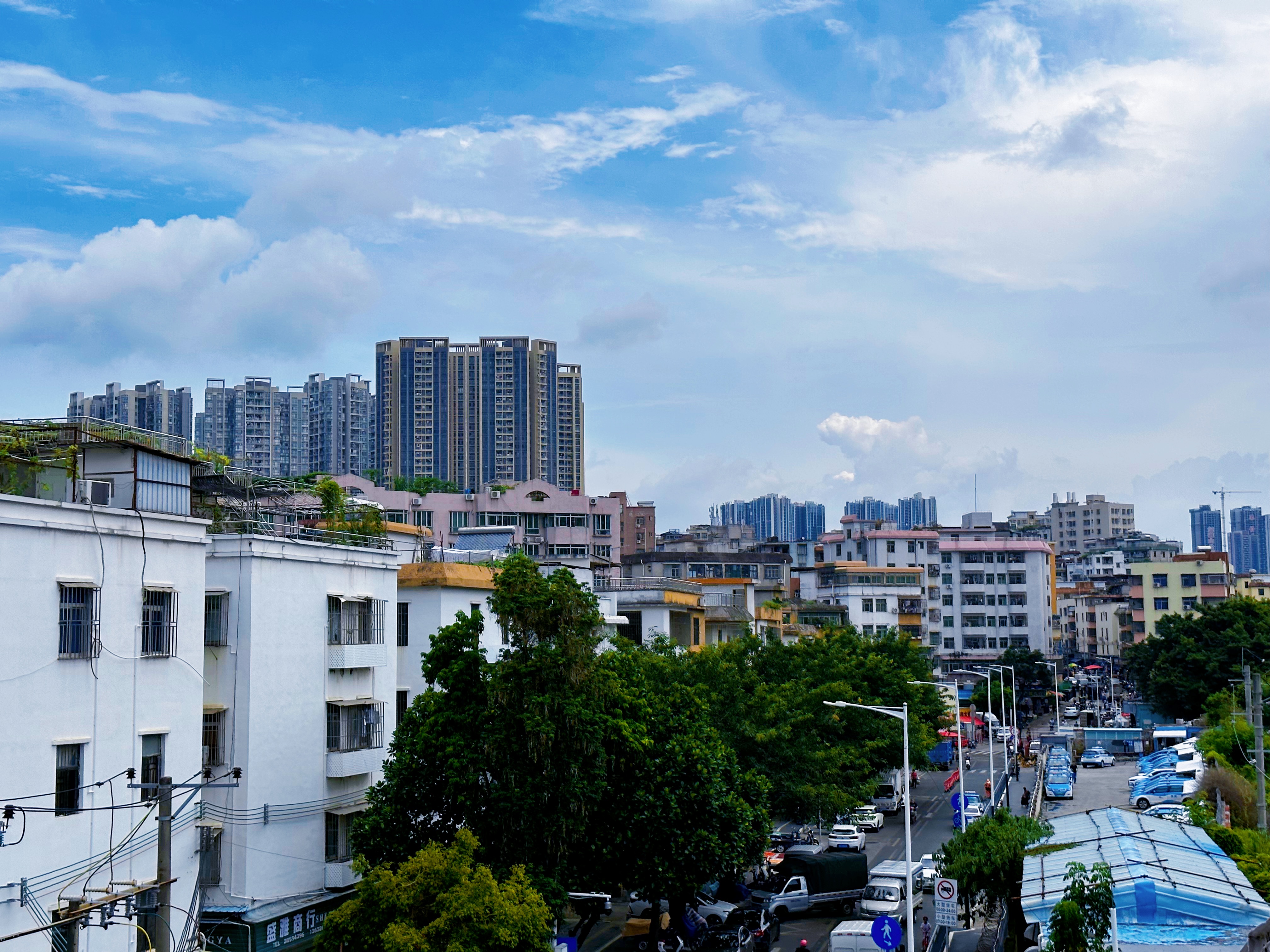 站在跨越铁路线的人行天桥上眺望,一望无际的建筑群与蓝天共绘着布吉的美好生活画卷,鳞次栉比的楼宇线条勾勒着布吉的繁华景致。