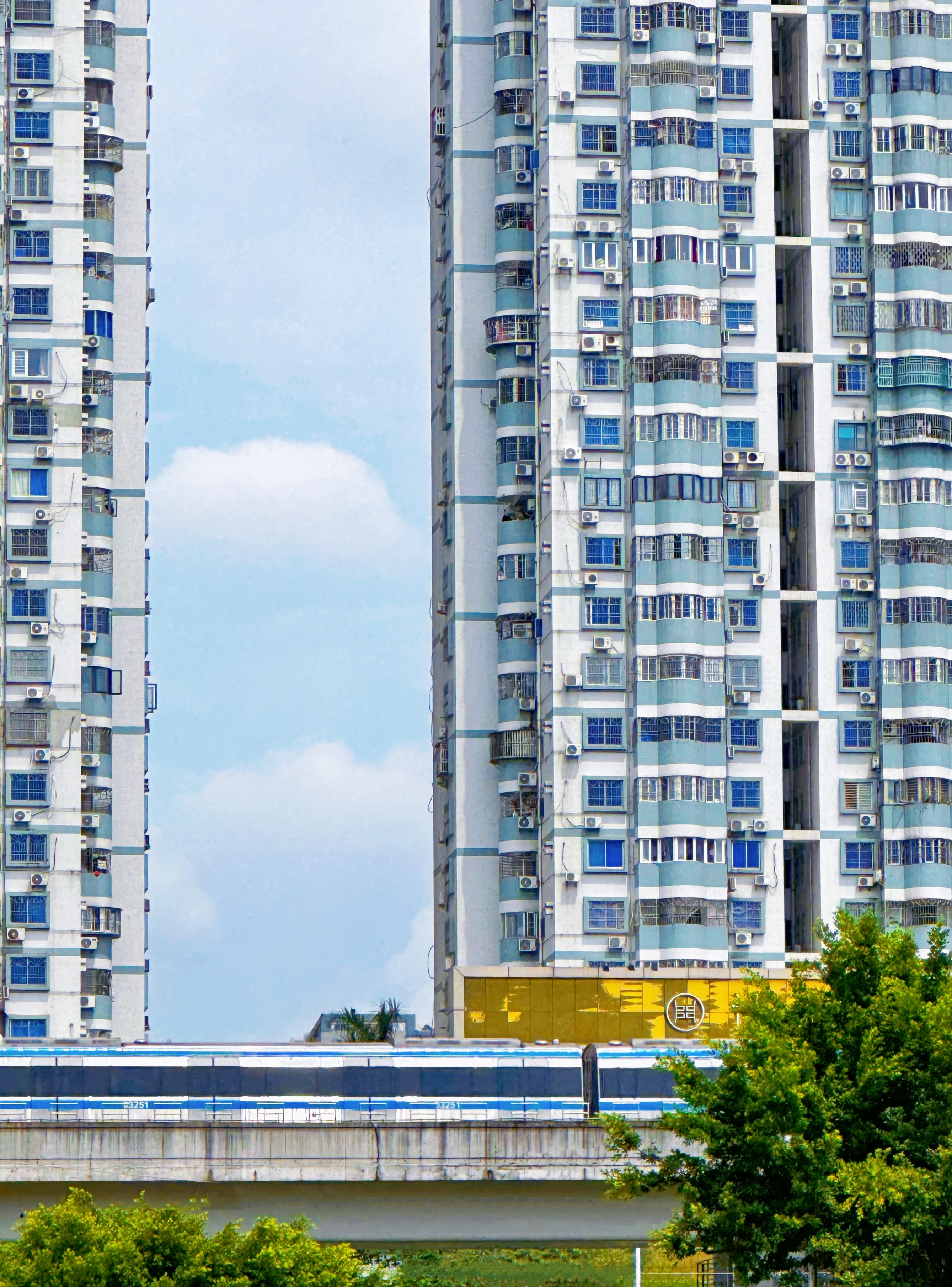 火车高铁穿行楼宇之间,由远及近,驰骋而过,又离我们渐行渐远,这样电影氛围的画面,就出现在「布吉」。