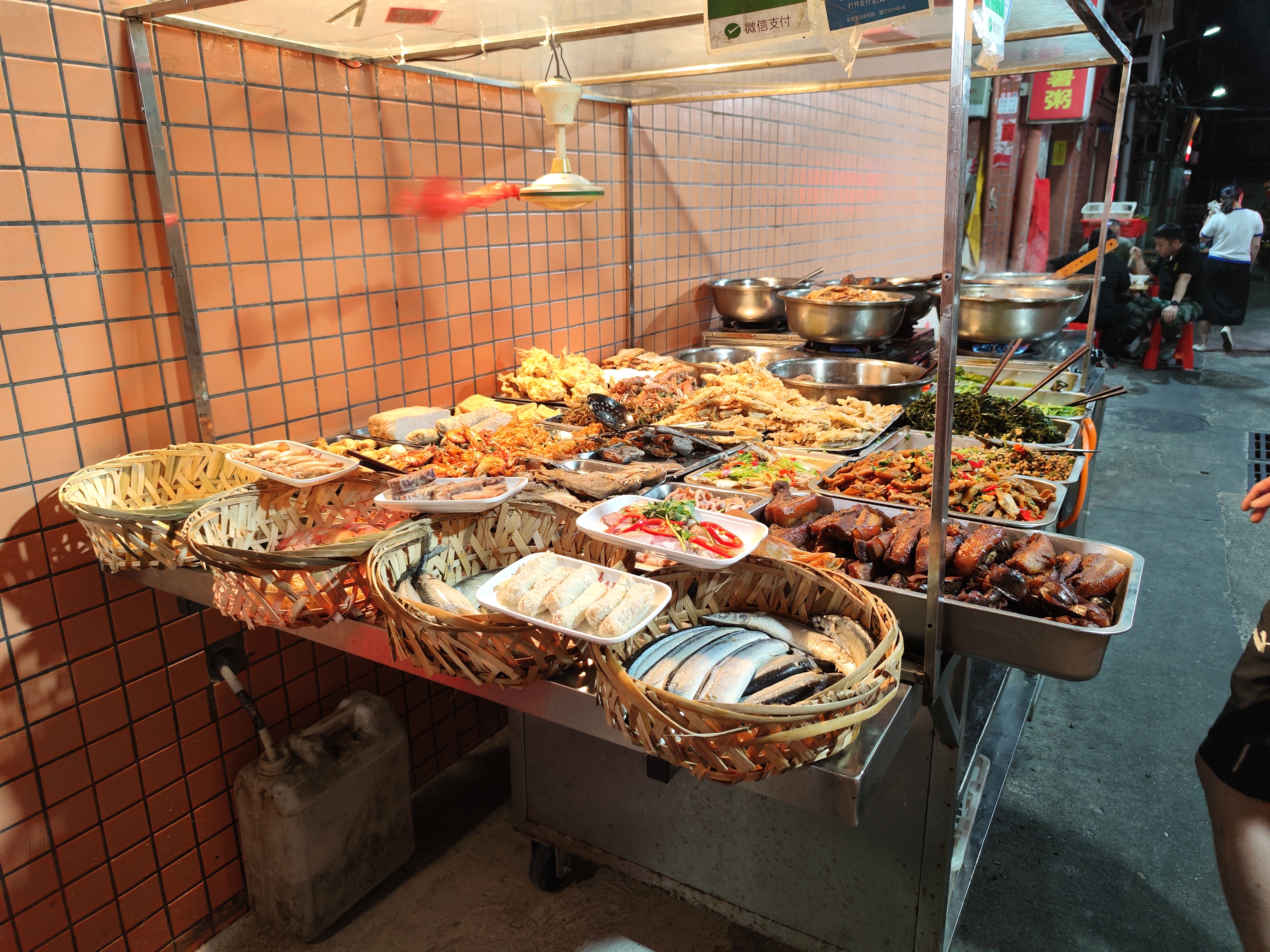 近50家小摊小店密布街边,炒米粉、鱼粥、小龙虾、炸豆干、烧烤……好气,好恨咱没有50升的胃哦!
