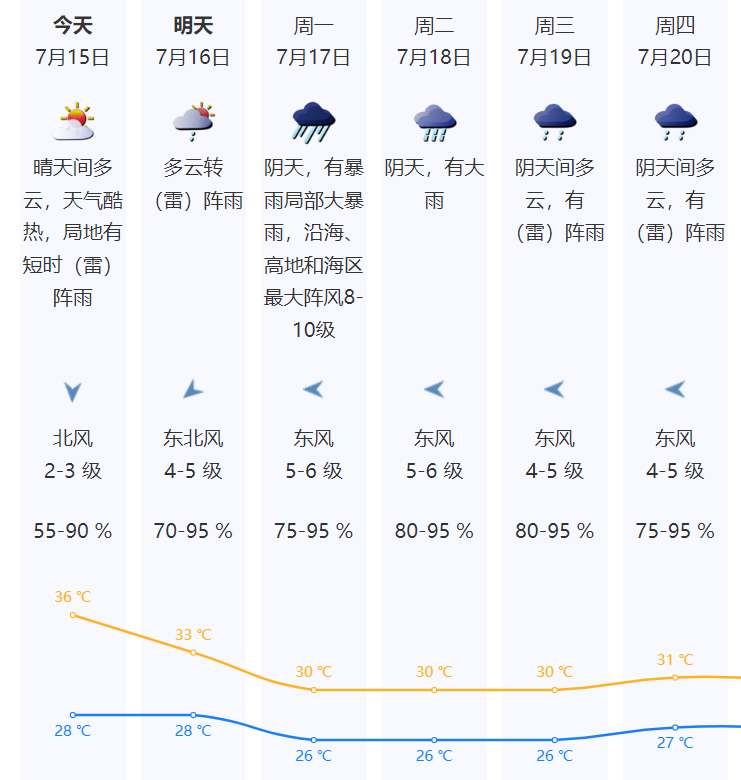 16-18日台风将对深圳有明显风雨影响。其中16日下午风力开始增大,过程最大阵风8-10级,风雨主要影响时段在16日夜间至17日。