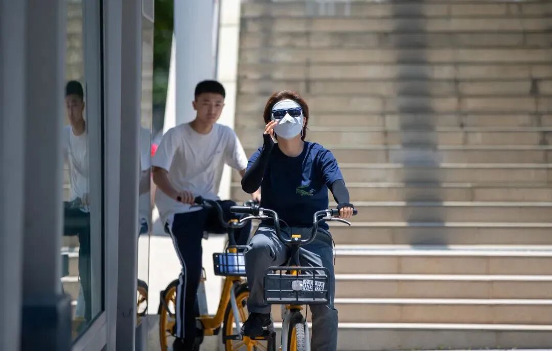 近日天气持续高温,深圳市民出行全靠装备。深圳特区报记者 赖犁 摄