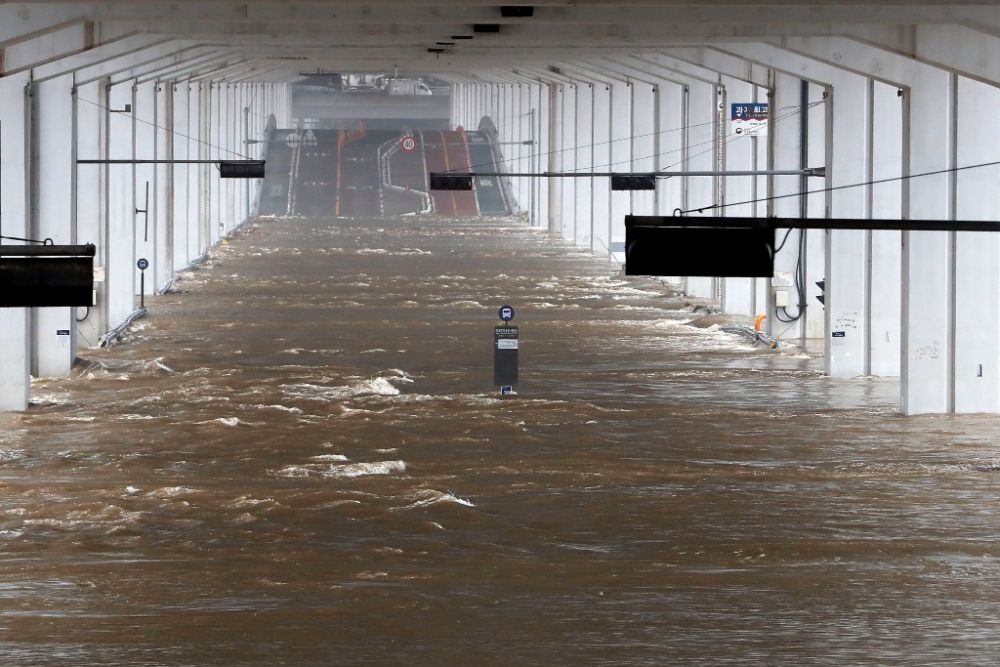 据韩联社报道,本月15日上午,由于强降雨导致美湖江水位上升,江堤被冲垮,这处距离江边仅三四百米的地下车道被淹,包括一辆公交车在内的至少16辆汽车被困水中。救援人员16日夜间从车道内打捞出包括那辆公交车司机在内的4具遇难者遗体,令死亡人数升至13人。随着排水和搜救工作推进,伤亡人数可能进一步上升。