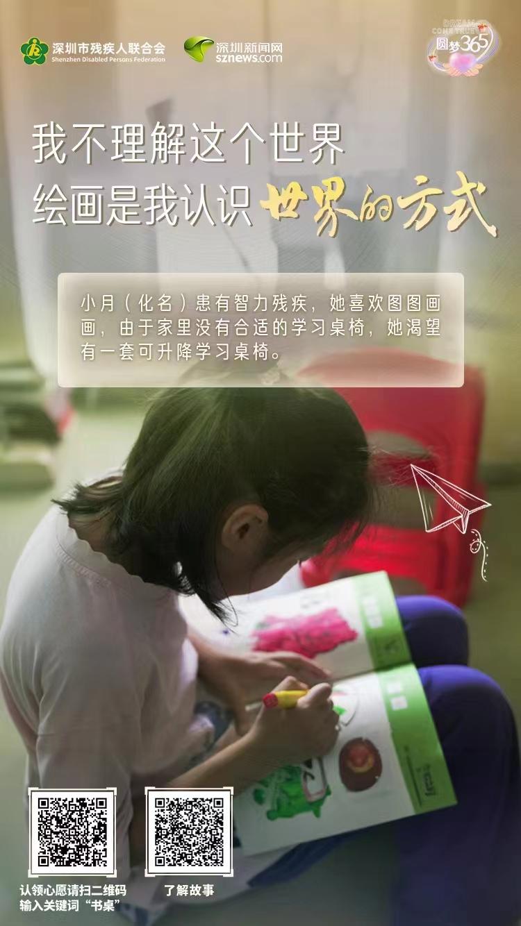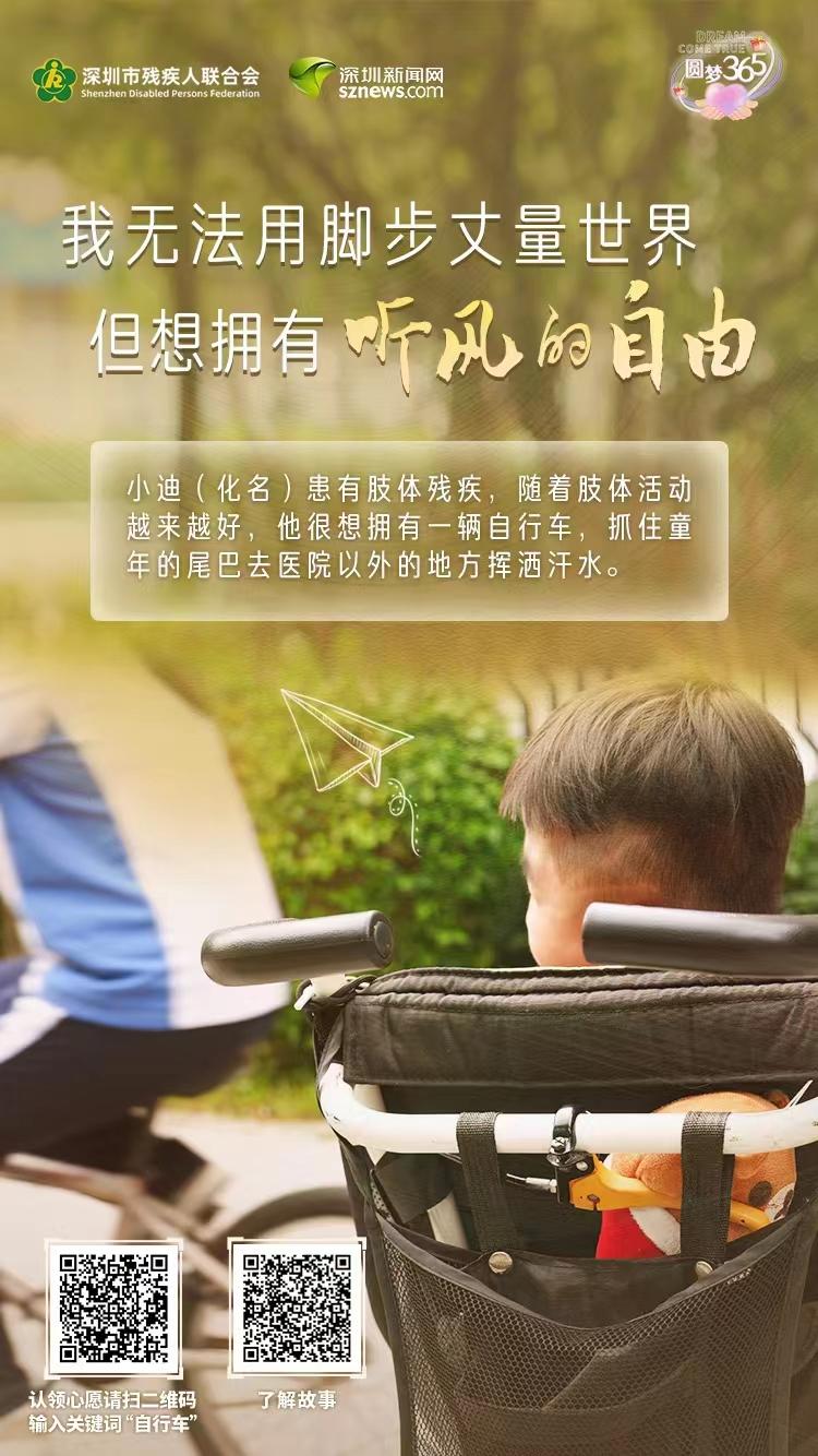 一本书、一张桌椅、一个篮球、一台电子琴……由深圳市残联、深圳新闻网共同主办的“圆梦365”微心愿公益平台,是一个为残疾朋友实现小需求、小心愿的公益平台。“我们希望通过残疾朋友许下的心愿,了解残疾朋友的真实需求,通过新媒体平台,推动全社会关注、关爱残疾人,让爱心落到实处,携手搭建起‘残健共融’的桥梁。”深圳市残联相关负责人表示。