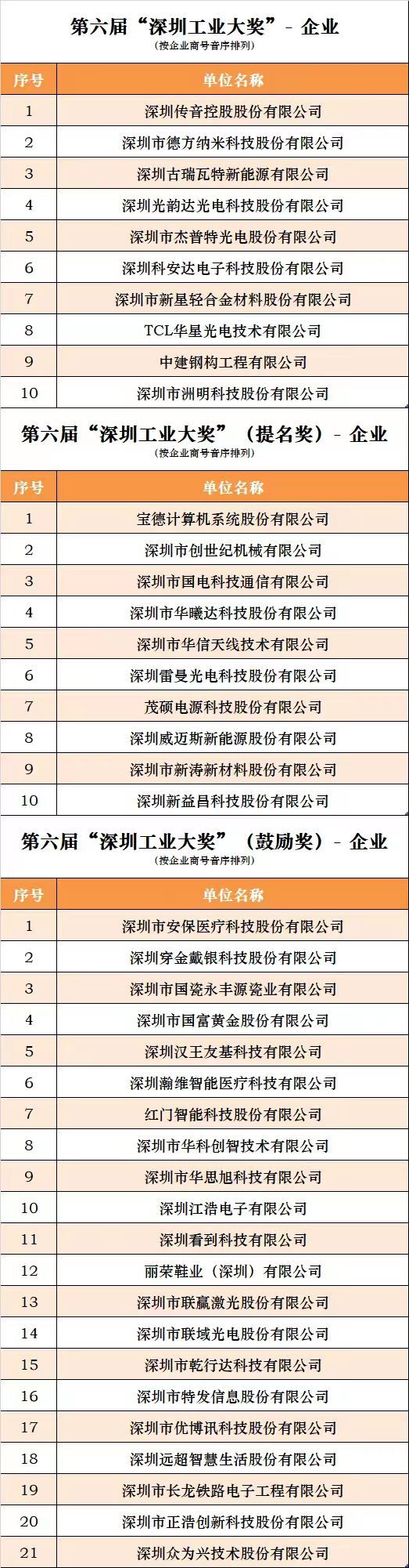 7月20日,第六届“深圳工业大奖”评审结束,评审结果于7月21日至25日在深圳工业网进行公示。