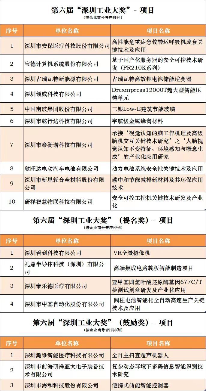 (原标题《第六届“深圳工业大奖”出炉》)