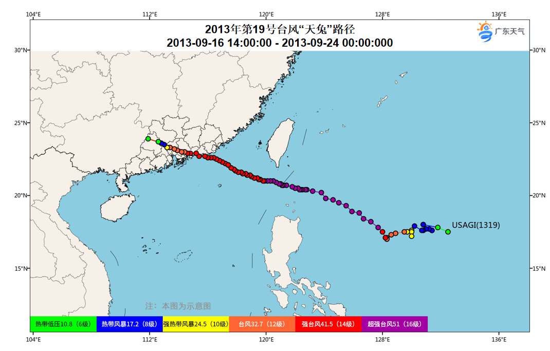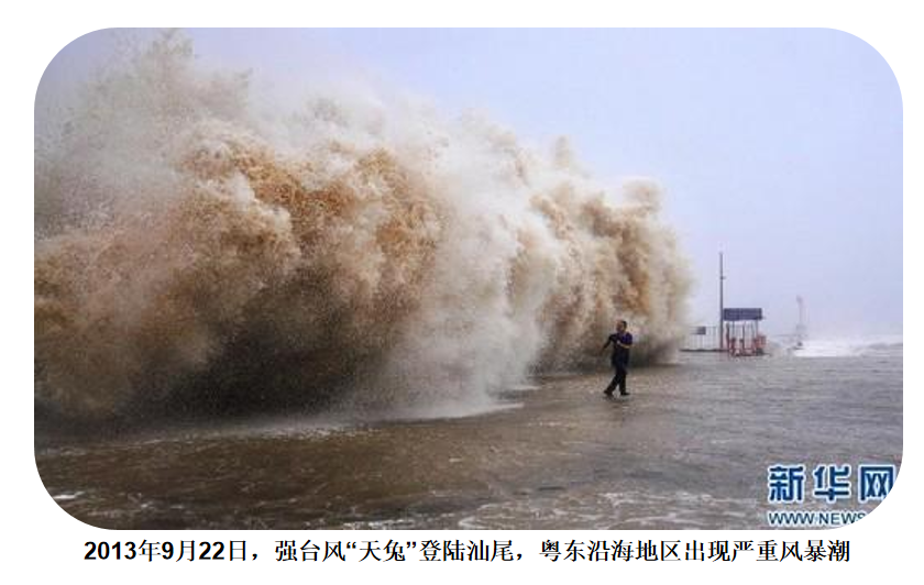 以强台风“天兔”为例,2013年9月22日,“天兔”在汕尾沿海地区登陆,粤东和珠江三角出现暴雨到大暴雨局部特大暴雨,粤东沿海出现了11~13级大风。