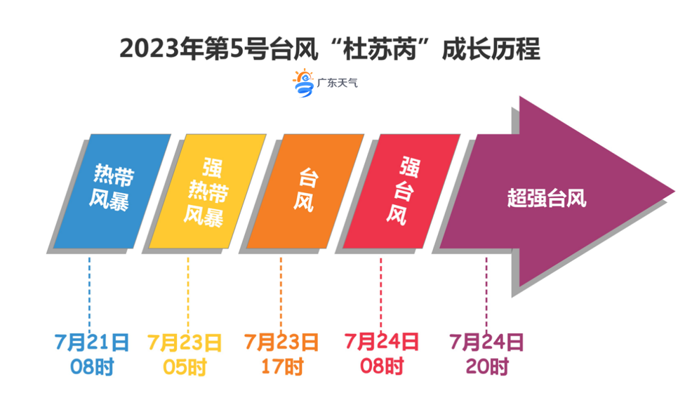 7月20日,上一个登陆广东的台风“泰利”残留云系刚消散,菲律宾东部洋面又有新的热带扰动发展,而且西南气流、越赤道气流、副高边缘偏东气流三支气流都在给它提供营养。7月21日08时,热带扰动加强为今年第5号台风“杜苏芮”(Doksuri,来源于韩国)。