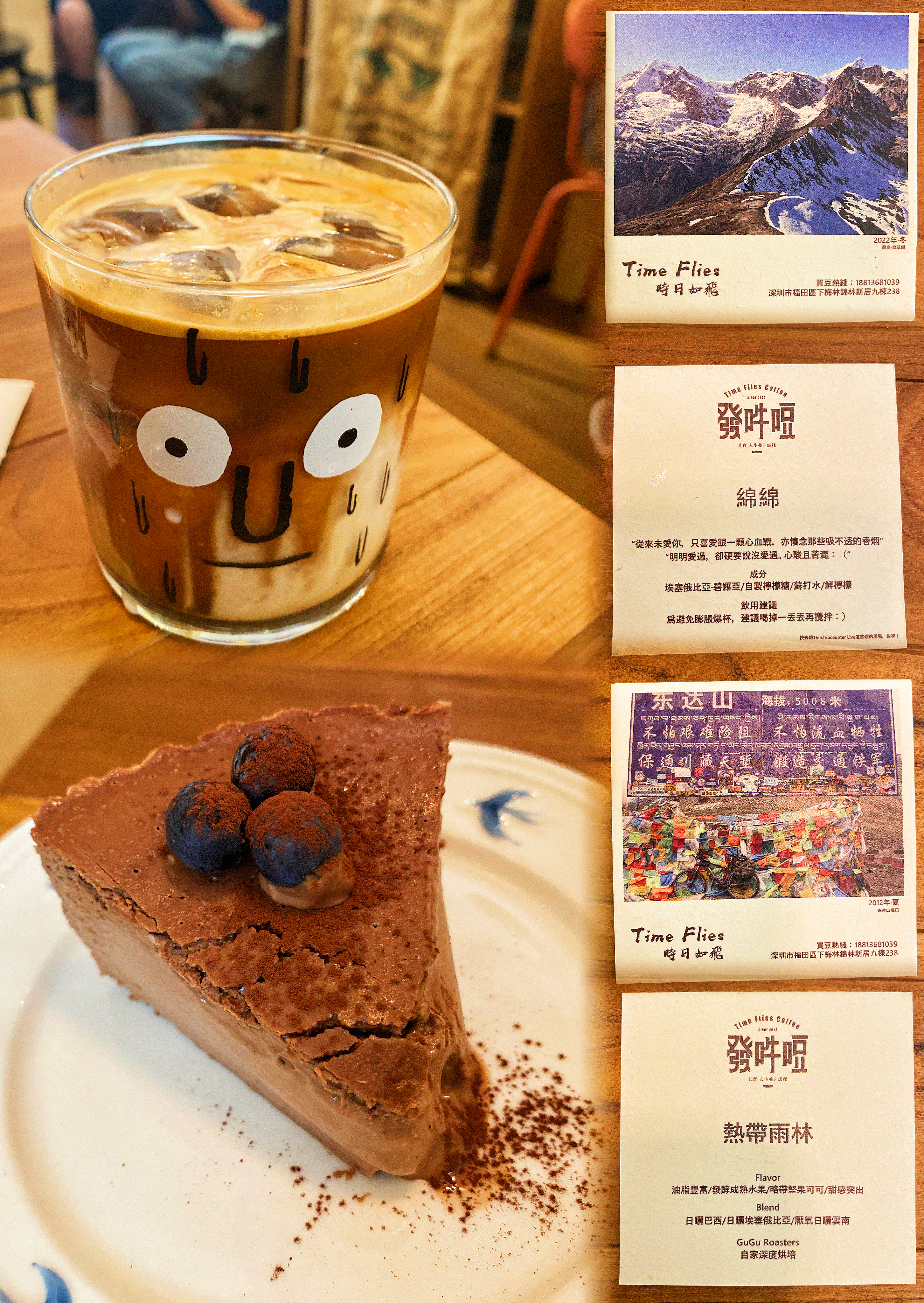 店里的工作人员很热情,互动很活跃,如果想跟老板聊聊偶像,那必定有说不完的话题,说起咖啡,也一样。咖啡特调以陈奕迅的歌名命名,通常还会附送一张写着名字和歌词的卡片。咖啡和蛋糕的味道,出乎意料的不错,值得一品。