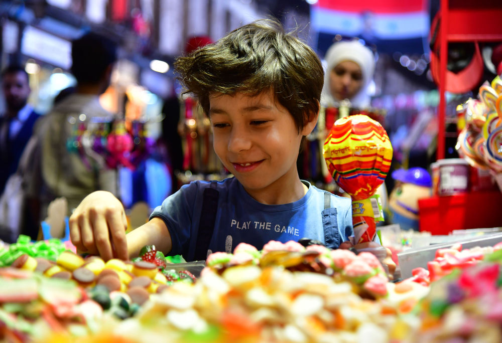 2021年5月11日,一名儿童在叙利亚首都大马士革的市场上挑选糖果。新华社发(阿马尔·萨法尔贾拉尼摄)