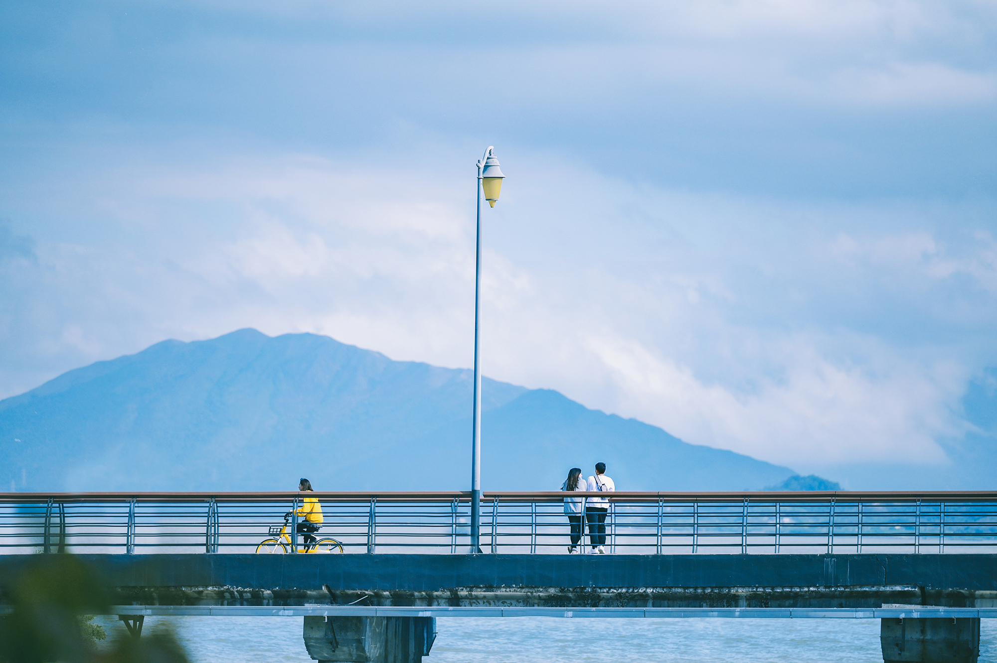 ▲冰冰在深圳人才公园海滨栈道City walk,拍下倚偎相伴的情侣。
