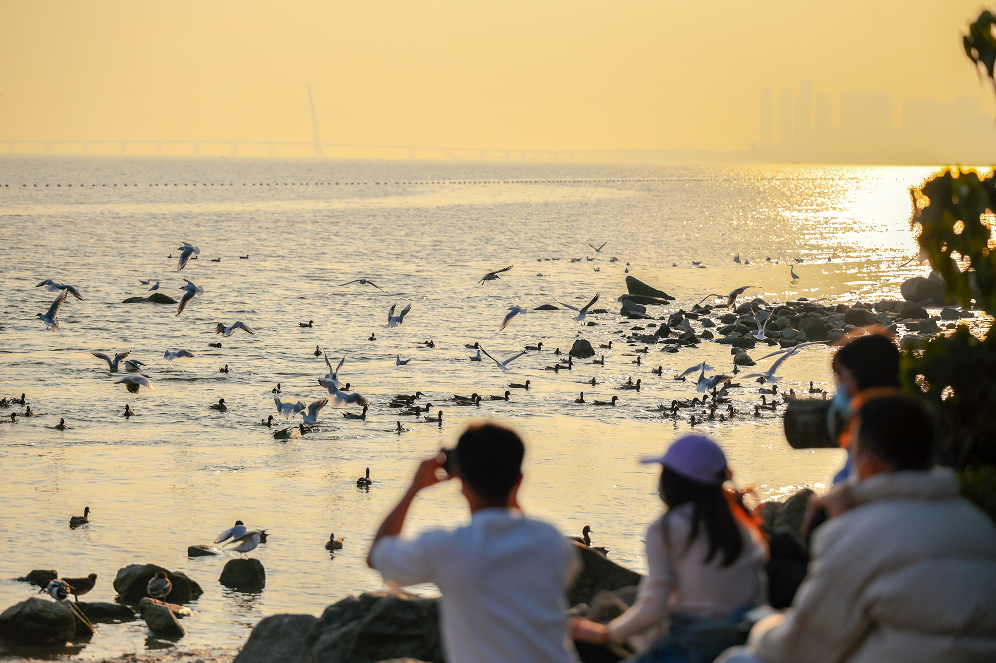 ▲深冬,冰冰在深圳湾见证万鸟齐飞的景象。