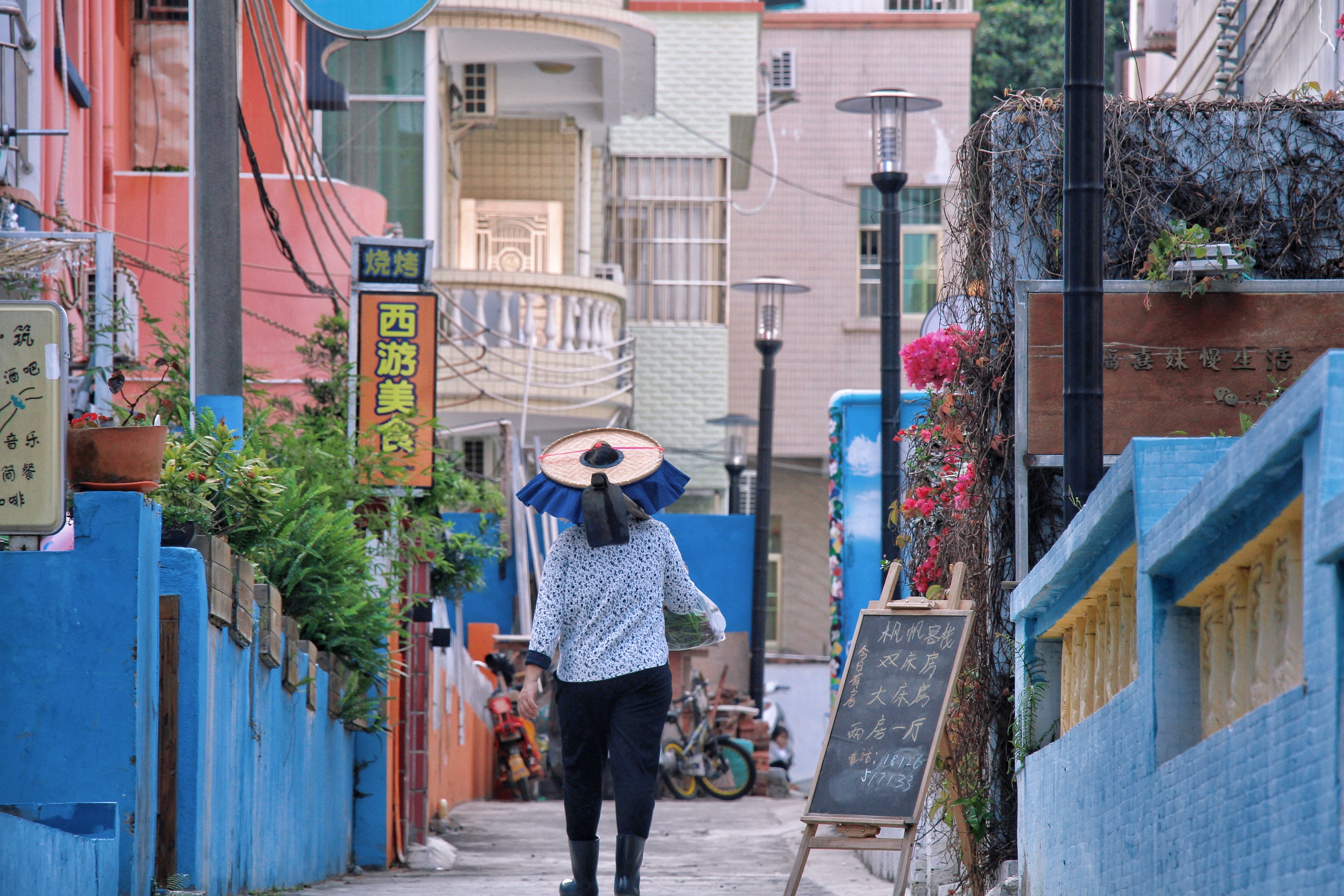 ▲这里是莫艳览喜爱的深圳古村落——鹤薮古村,一位老妇人正在漫步。