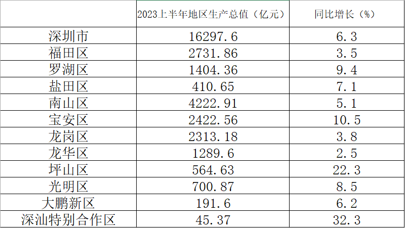 上周,深圳市交出上半年经济“成绩单”:2023年上半年深圳全市地区生产总值为16297.60亿元,同比增长6.3%,经济运行整体回升向好。