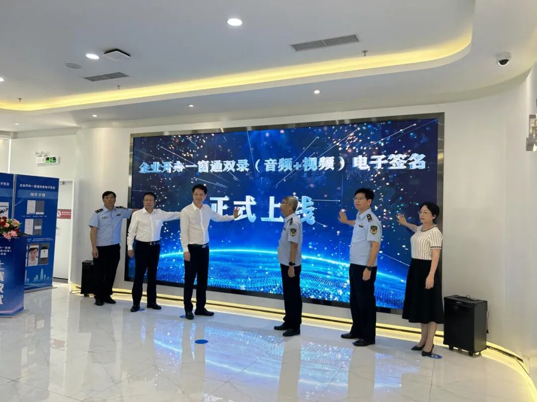 企业开办一窗通双录(音频+视频)电子签名上线仪式现场。