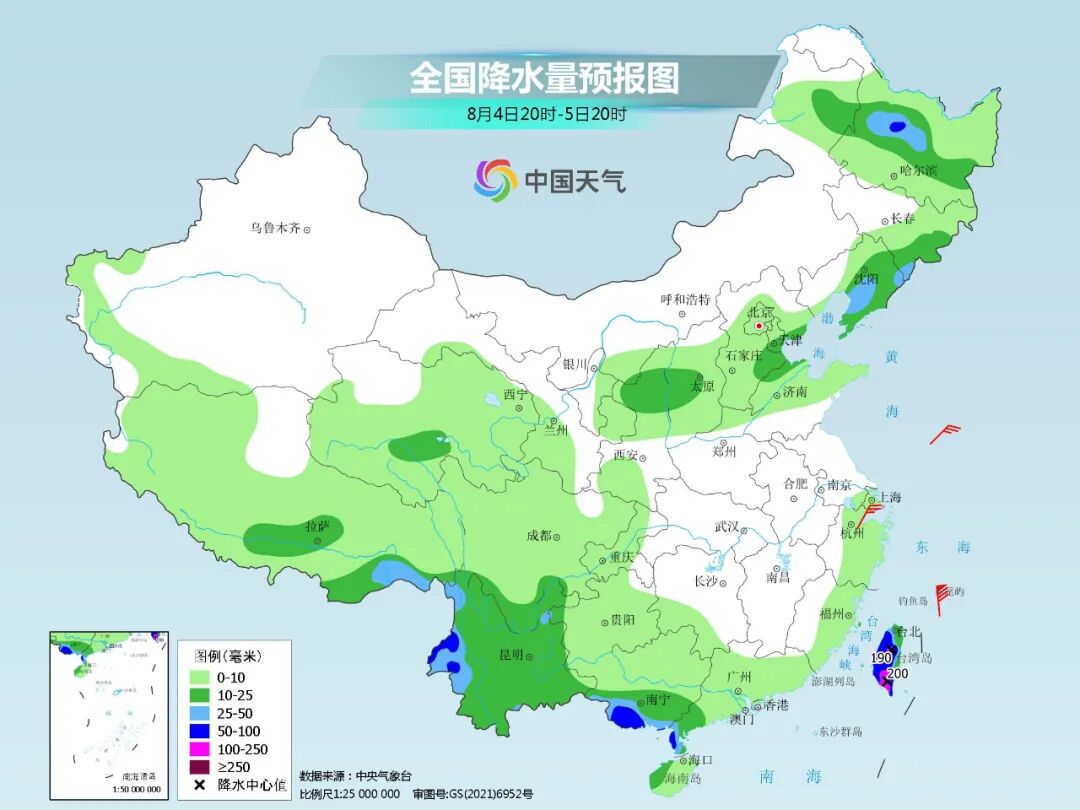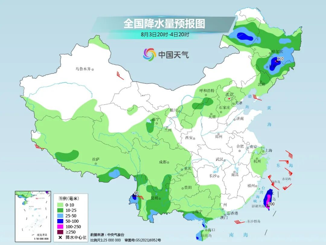 预计,今天夜间至4日,内蒙古东部、黑龙江、吉林等地部分地区有大到暴雨,局地有大暴雨。上述部分地区伴有雷暴大风或冰雹等强对流天气。中央气象台今晚18时继续发布暴雨蓝色预警。