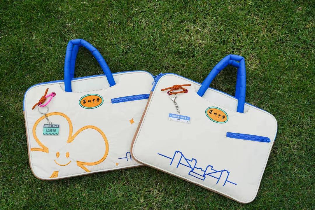 今年,深圳中学打造了一份独属于2023级深中人的录取大礼包。这次礼包的亮点之一,是一个手提包,手提包特别采用防水面料,轻便又好携带,即使在风雨天,手提包内的学习用品也不会“再受伤害”。手提包上图案采用蓝橙配色,彰显活力与青春,有深中建筑的“粗线条”,也有凤凰花的“个性化”,更有独属于每位深中学子的穿绳。也许这款轻便手提包会成为深中学子下一个时尚单品。