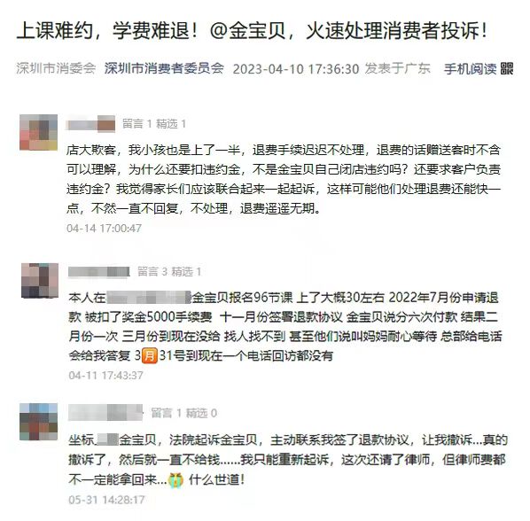 (原标题《深圳市消委会公开劝谕培训机构“金宝贝” ,部分门店撤店,拒绝退还剩余课程费用》)