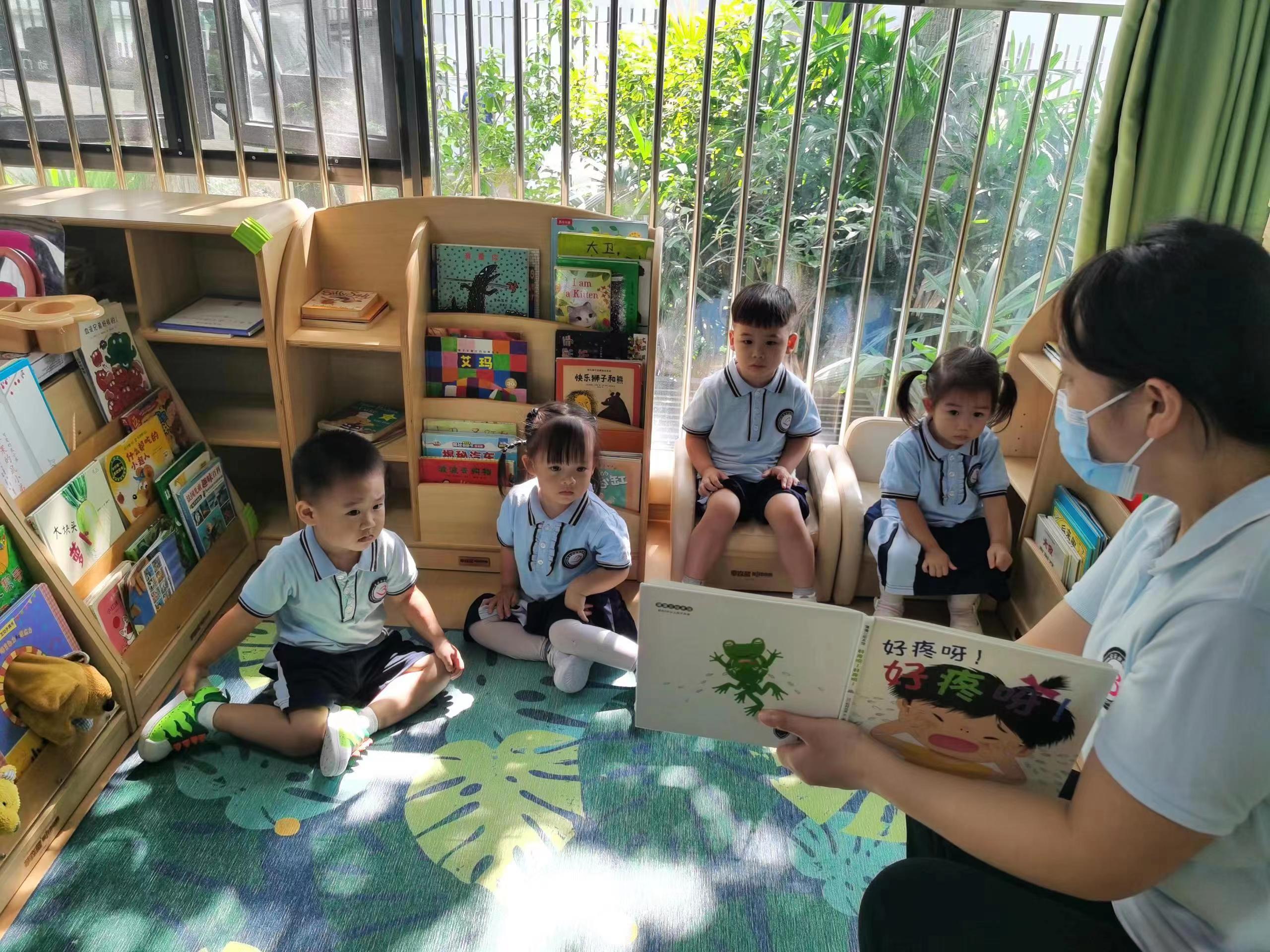 ▲宝安区善育托育园的老师为孩子讲绘本故事。