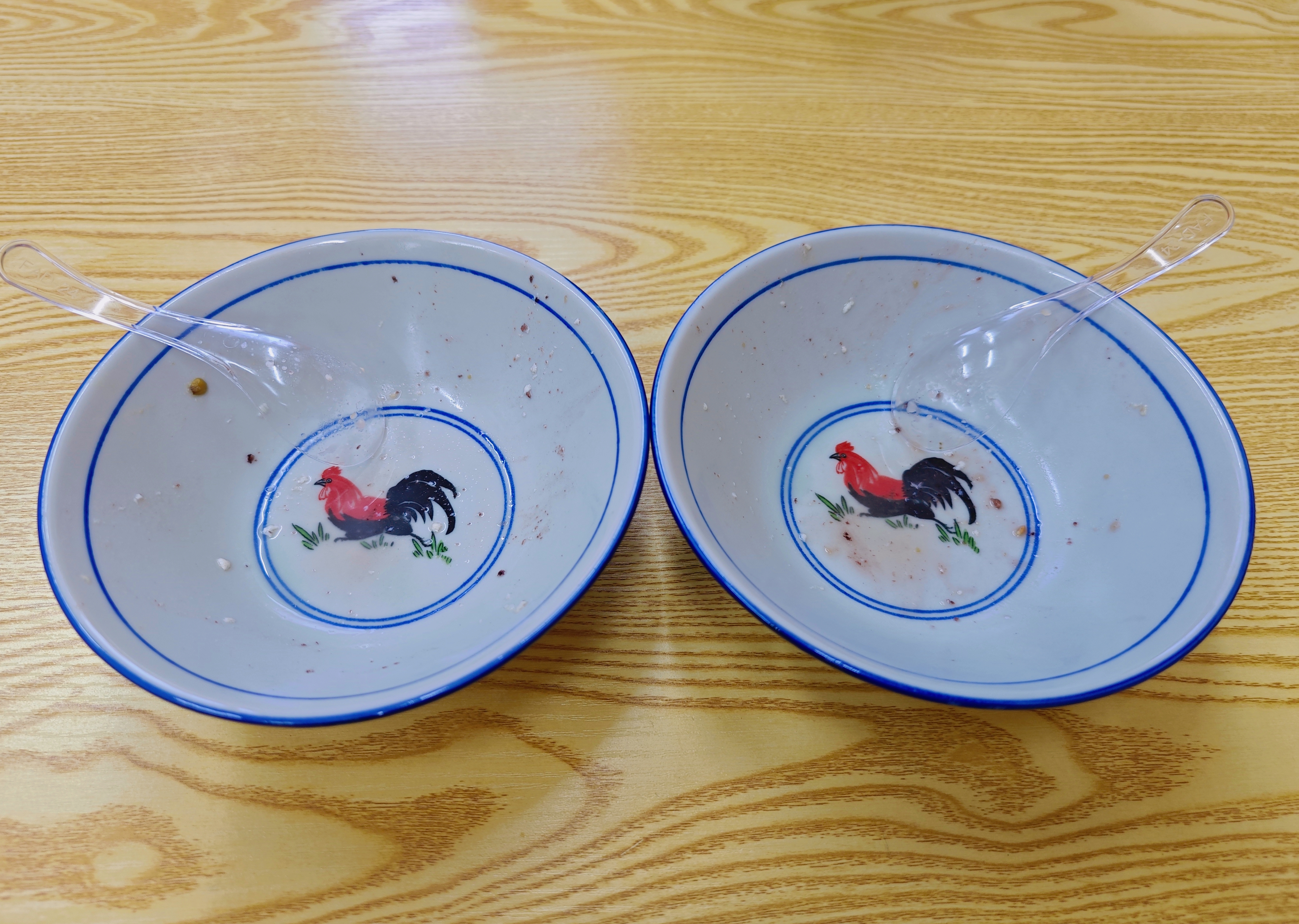 ▲连吃三天,次次空碗。露出大公鸡的鸡公碗为证。