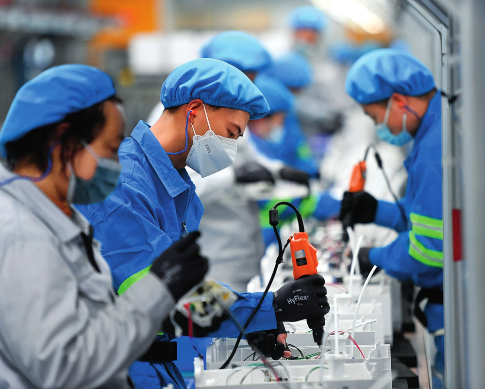 工人在浙江沁园水处理科技有限公司生产车间组装家用净水产品(2023 年 3 月 22 日摄)黄宗治摄 / 本刊