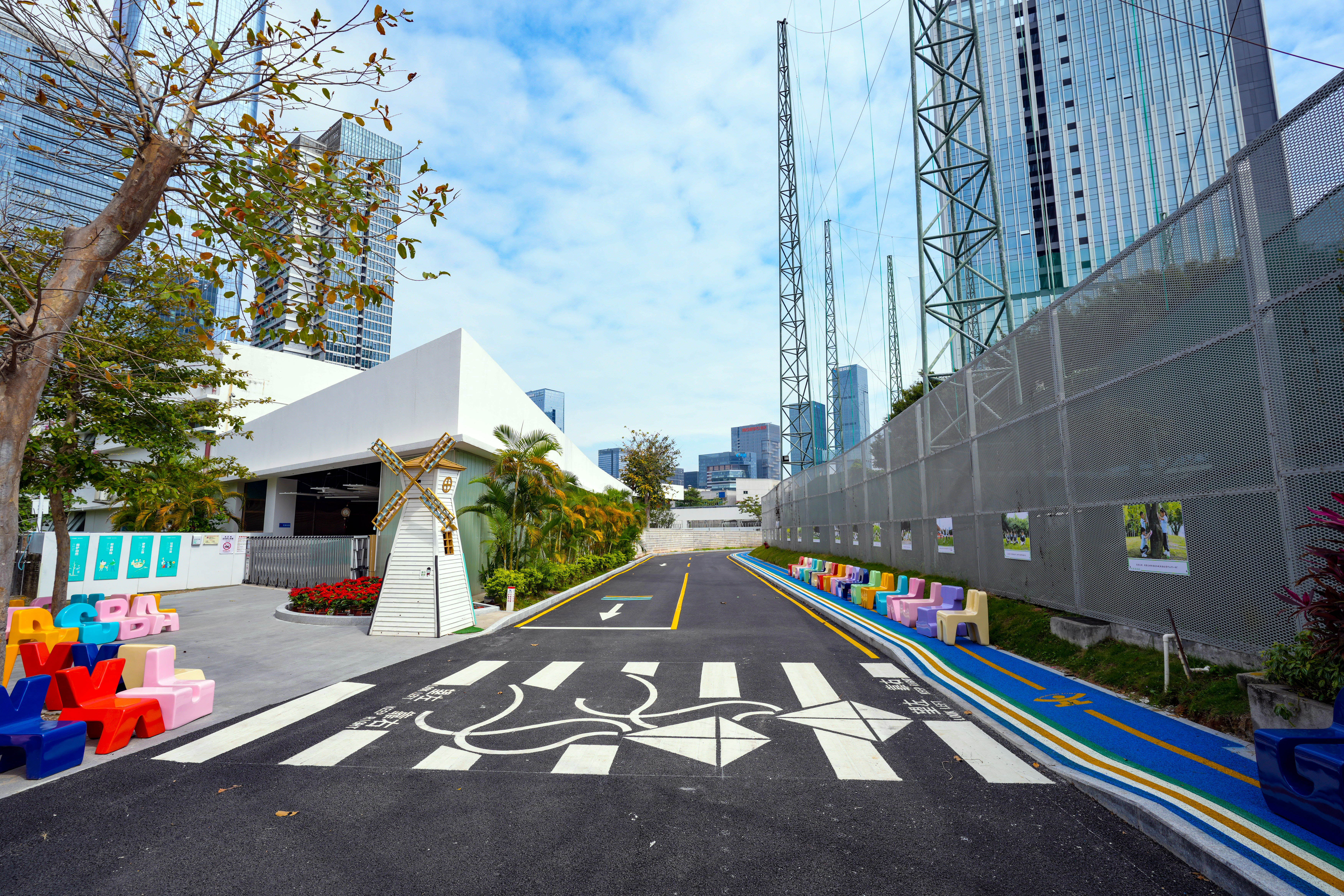 黄、蓝、绿、白四色铺就的“彩虹路”你走过吗?这条靓丽的道路位于深圳大学附属南山幼儿园门口,是南山区首条“儿童友好型”示范路。