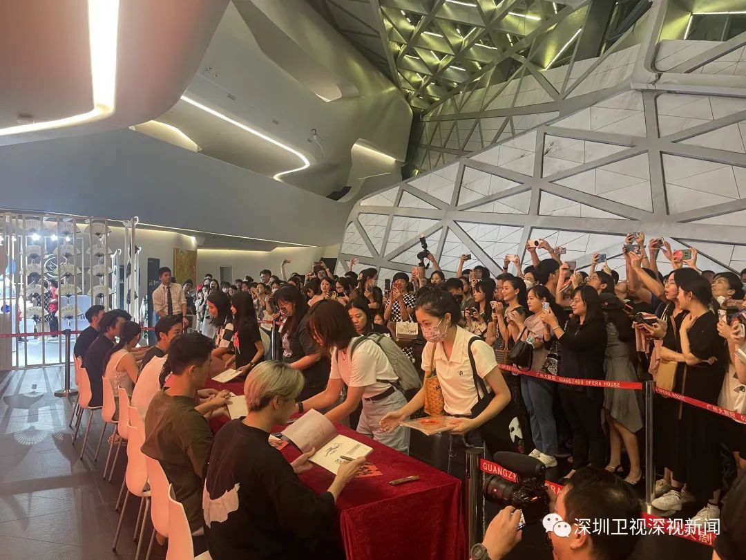 演出散场后,现场仍有大批观众没有离开。他们排起长队,等待着主创团队的签售,与他们近距离见面。
