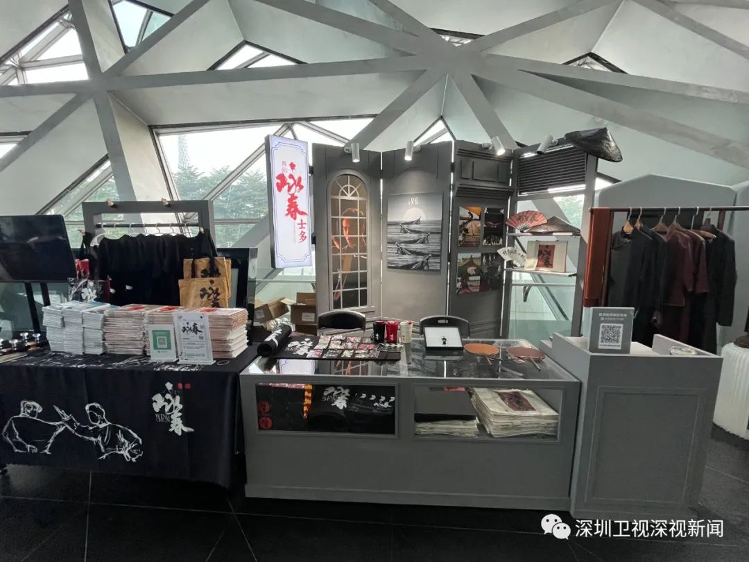 例如,销售《咏春》周边的咏春杂货铺,这次更名为“咏春士多”。演出时的服化道香云纱,以及用于制作的薯莨汁,也依次进行了展示。同时,在周边展柜现场,首次带来了八卦掌的潮玩形象。