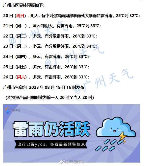 广州方面,今天雷雨继续周末加班,下周前期阳光扮演主角,后期雷雨再次活跃。