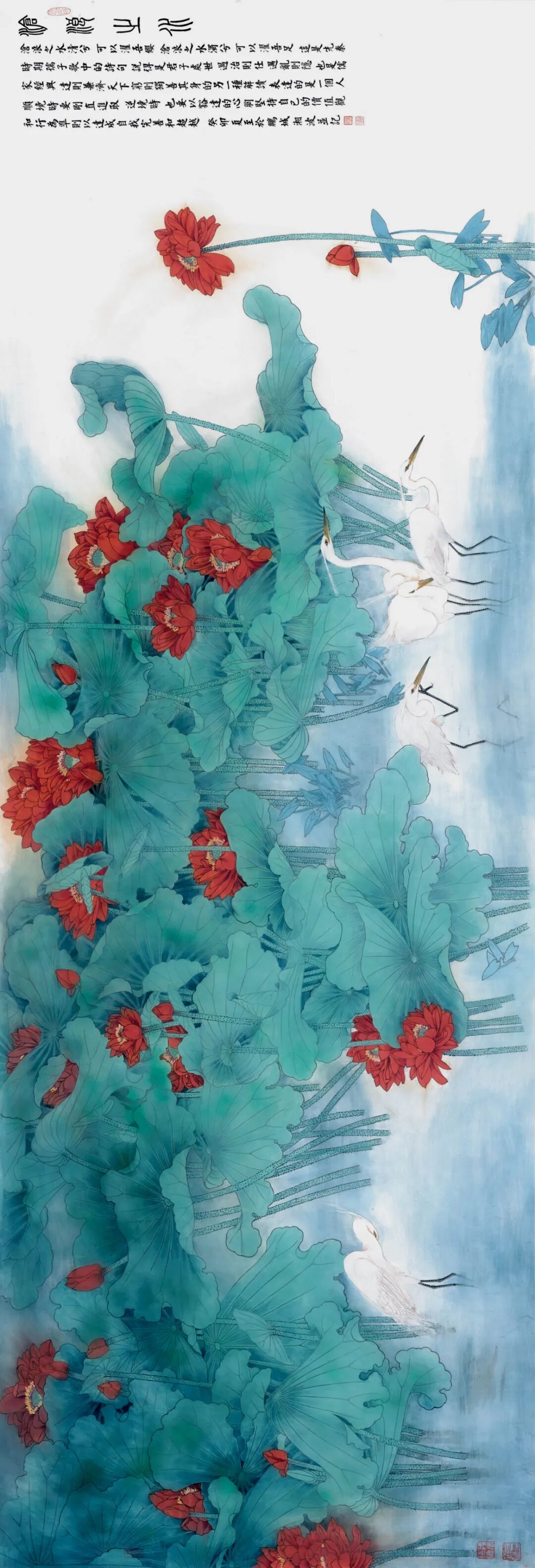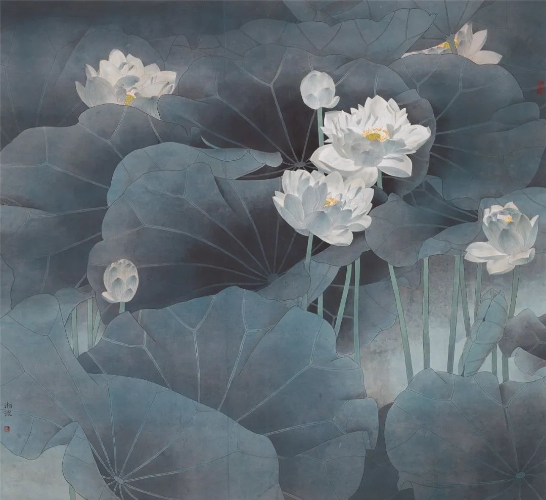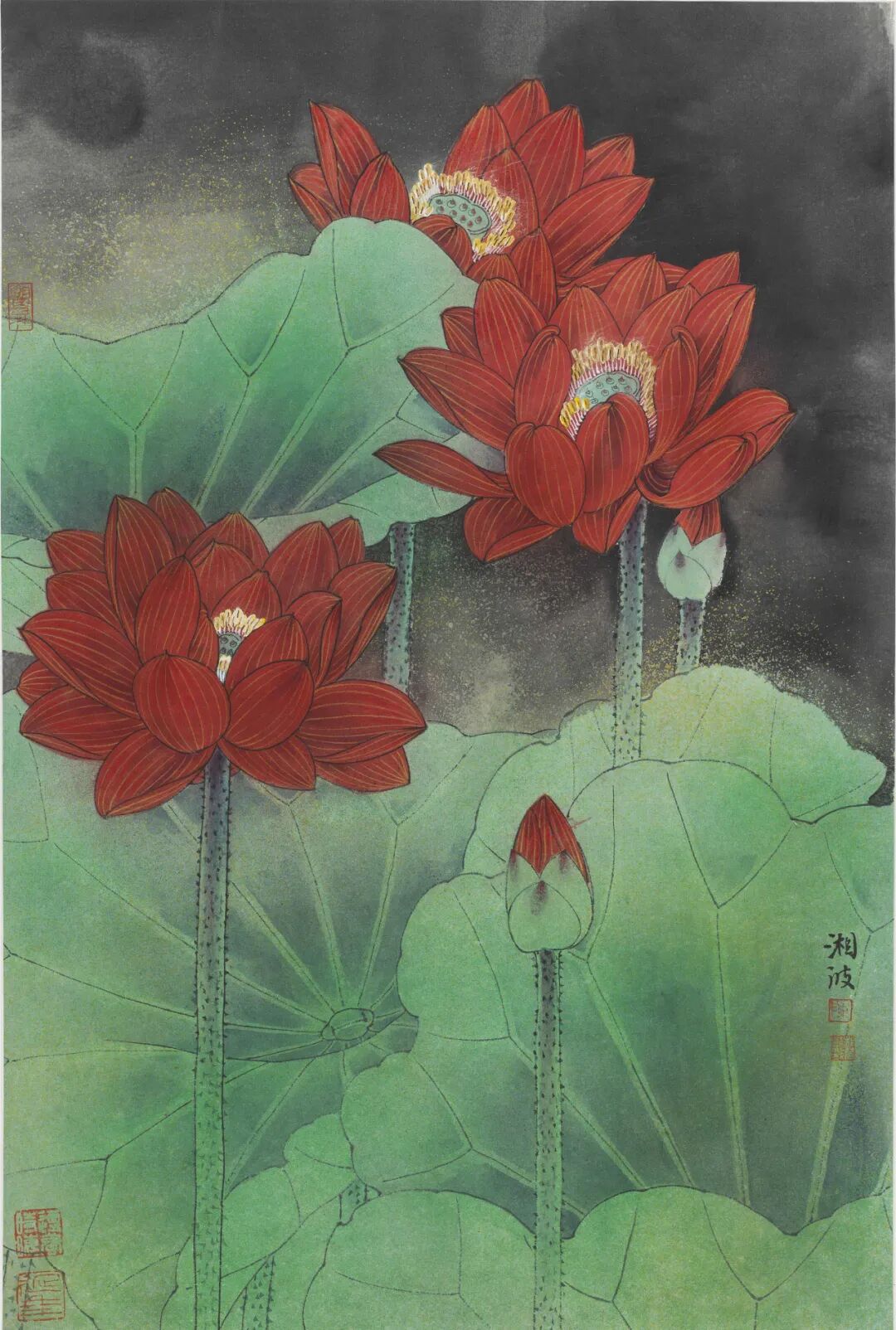 何为匠心?横跨几十年,择一事爱一生,把一件事做到极致,是陈湘波在时间洪流中的沉淀与对抗,也是他一以贯之的不灭初心。作为当代中国画的从业者,陈湘波在四十余年的工笔画探索中,努力以平静的构图和沉稳的气息描绘一个清澈、静谧的自然世界;用豪迈、大胆的泼墨泼彩与精工细腻的勾勒形成的张力,营造与传统工笔画不同的当代情境。