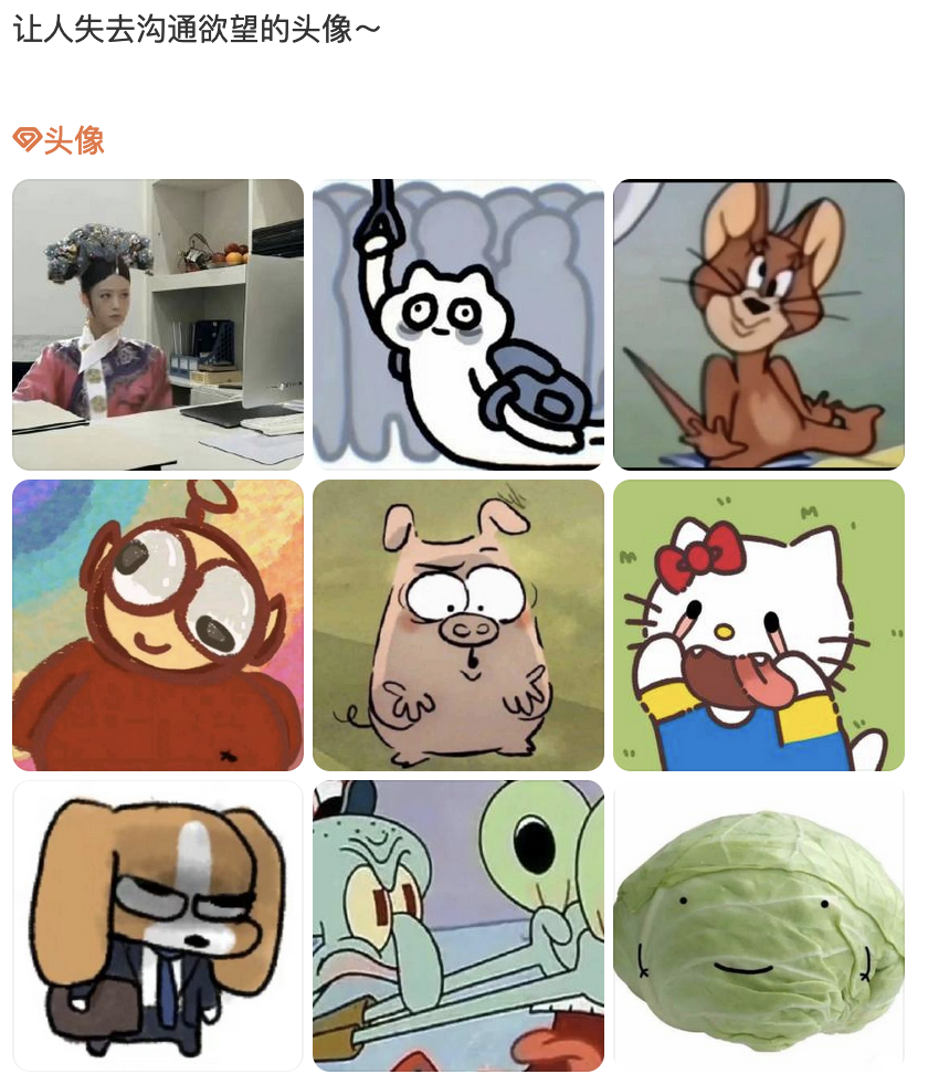 这些头像的流行,当然有被网络娱乐化的夸张成分,但其之所以引发共鸣,让很多人会心一笑,必然是戳中了某些痛点。头像,可以说是这个网络社交时代的名片,是一个人展示自我的第一窗口,也是对方了解你的第一印象。按理说,本该精挑细选才是,但这些看起来随意糊弄的头像,折射的却是某种群体心理。