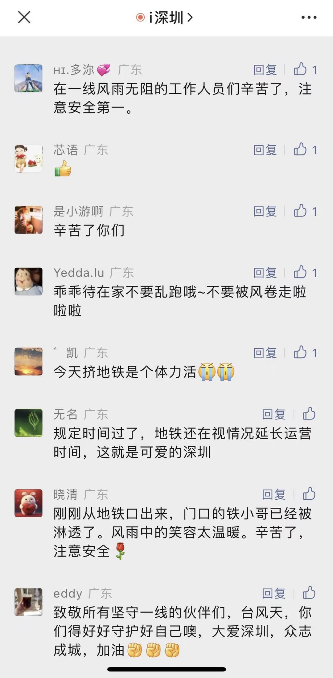 这温馨的一幕,正如一位网友留言所说:致敬所有坚守一线的伙伴们,台风天,你们要好好守护好自己,大爱深圳,众志成城,加油!