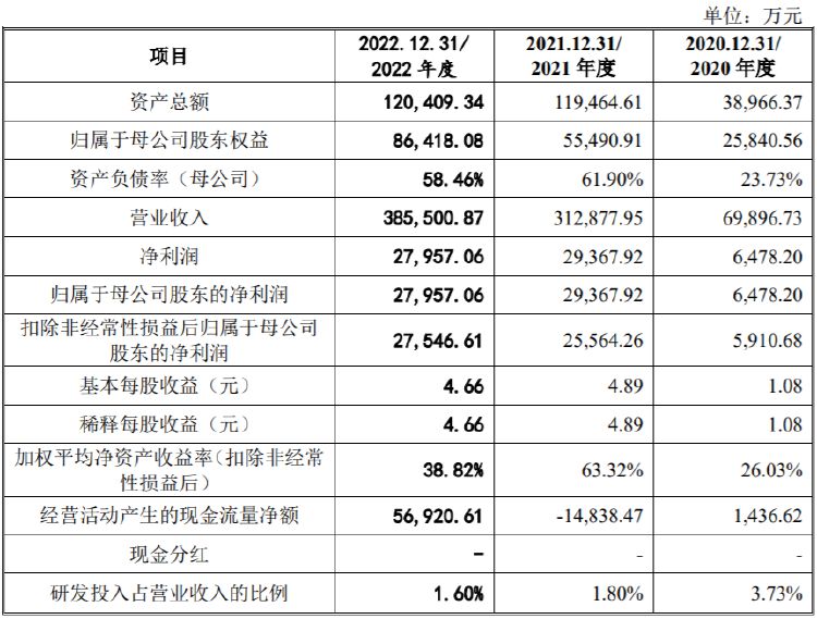 业绩方面,2020-2022年(以下简称“报告期”),公司营业收入分别为6.99亿元、31.29亿元和38.55亿元,归属于母公司股东的净利润分别为6478.20万元、2.94亿元和2.79亿元。可以发现,电子网2021年营收规模和净利润水平均实现跨越式增长,但是2022年净利稍有下滑。