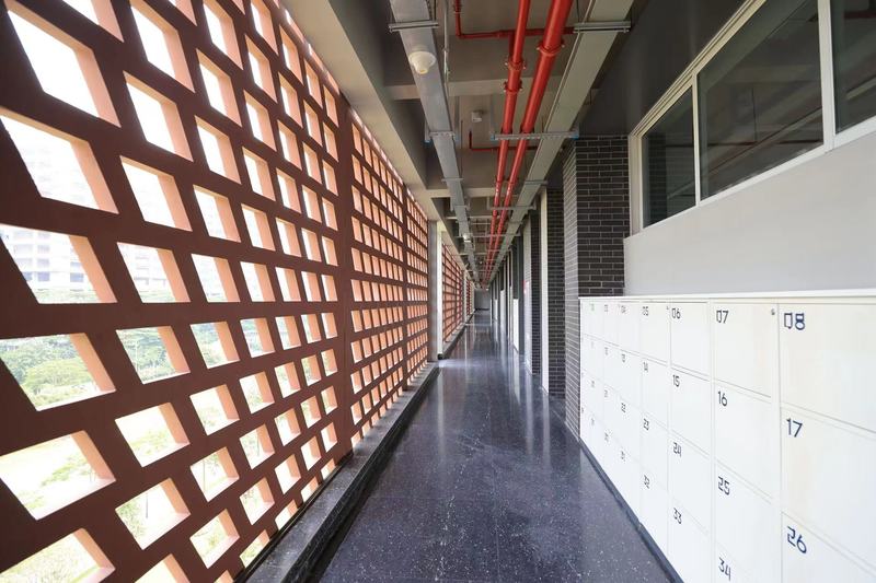 ▲深大实验校园走廊一角,每个班级门口都配置了智能储物柜。深圳晚报记者 陈玉 摄