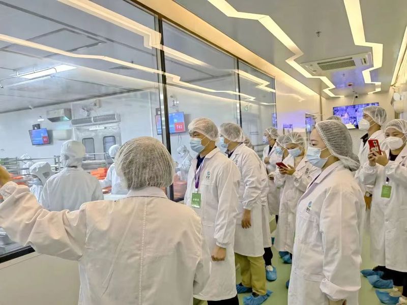 ▲新秀小学代表深入了解学生餐的制作过程。学校供图